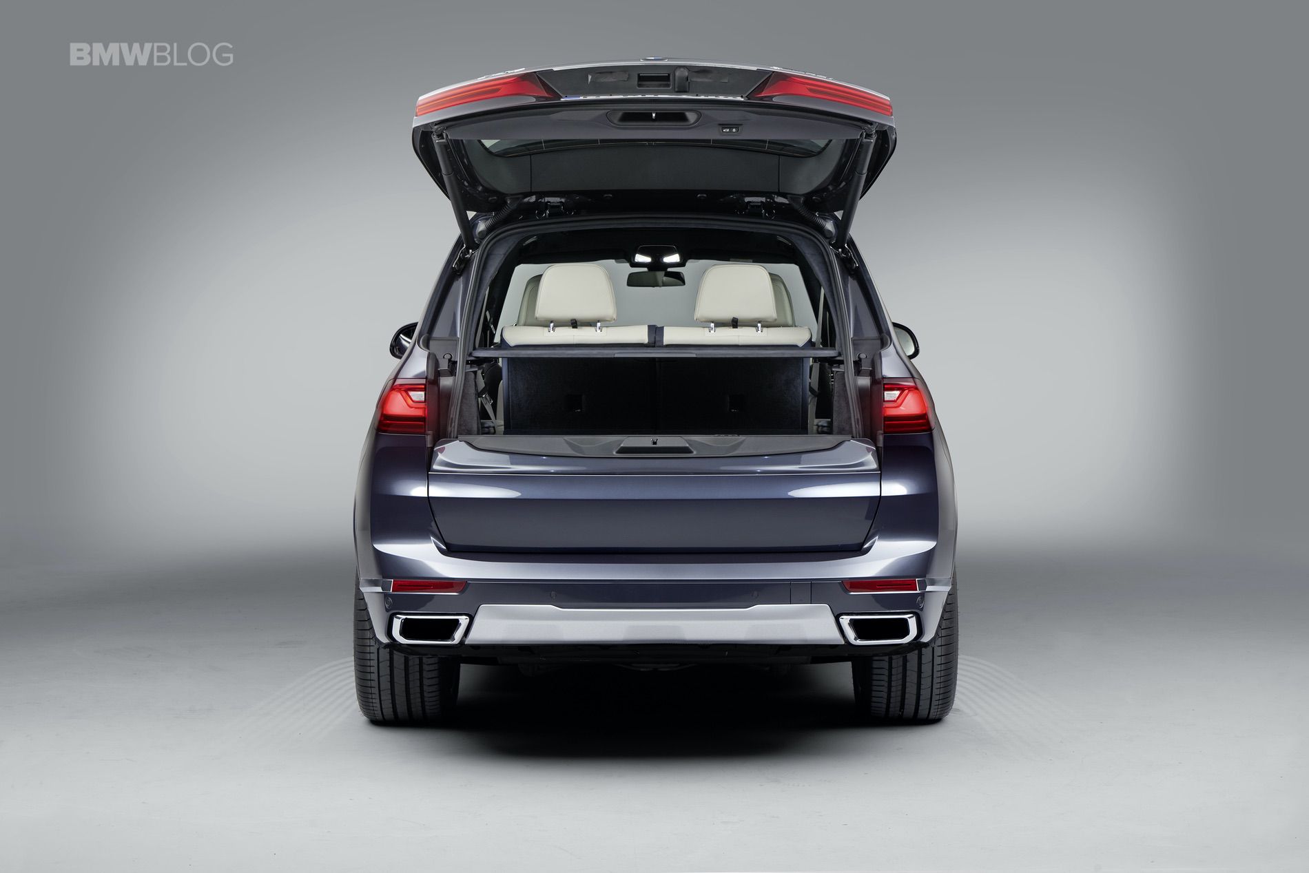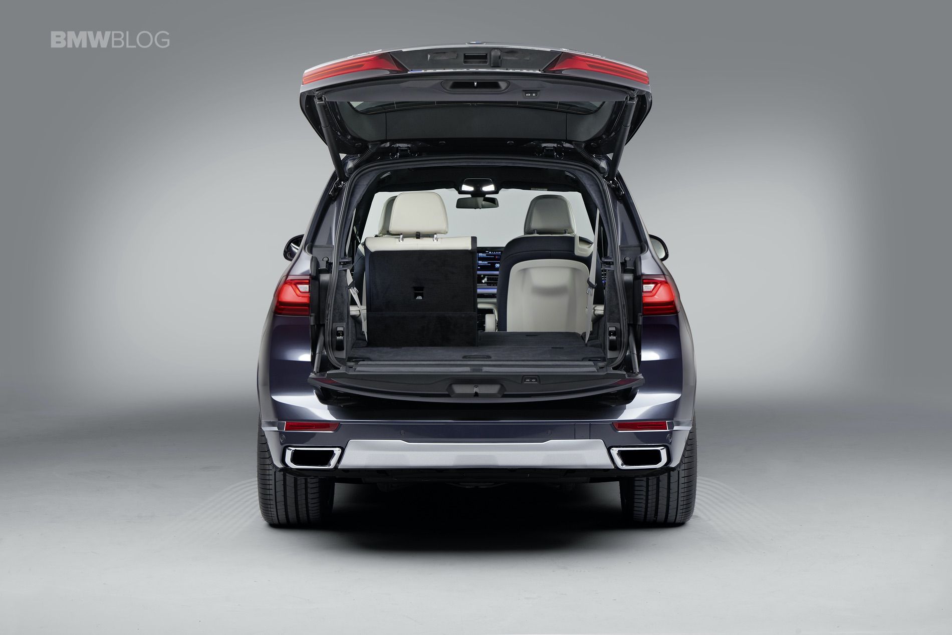 The rear looks equally wide and high, and already suggests that behind the split tailgate can accommodate a lot of luggage. Even in the configuration as a seven-seater, with mounted third row of seats, the BMW X7 still offers 326 liters of luggage space. If the third row of seats is folded down in the boot, the storage capacity extends to 750 liters. And anyone who wants to use the X7 as a furniture hauler, can fold both rear seat rows and get 2,120 liters.