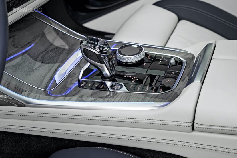 Inside, you’re getting a variation of different upholsteries –Â SensaTec Black, nine premium Vernasca and Extended Merino Leathers (in the X7 xDrive40i for the US market). The two-tone Ivory White/Navy Blue Full Leather Merino interior, with a Navy Blue leather dashboard and a Navy Blue Alcantara headliner, can be specified for some models.