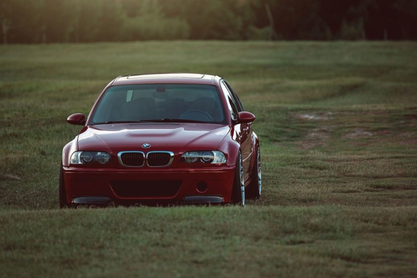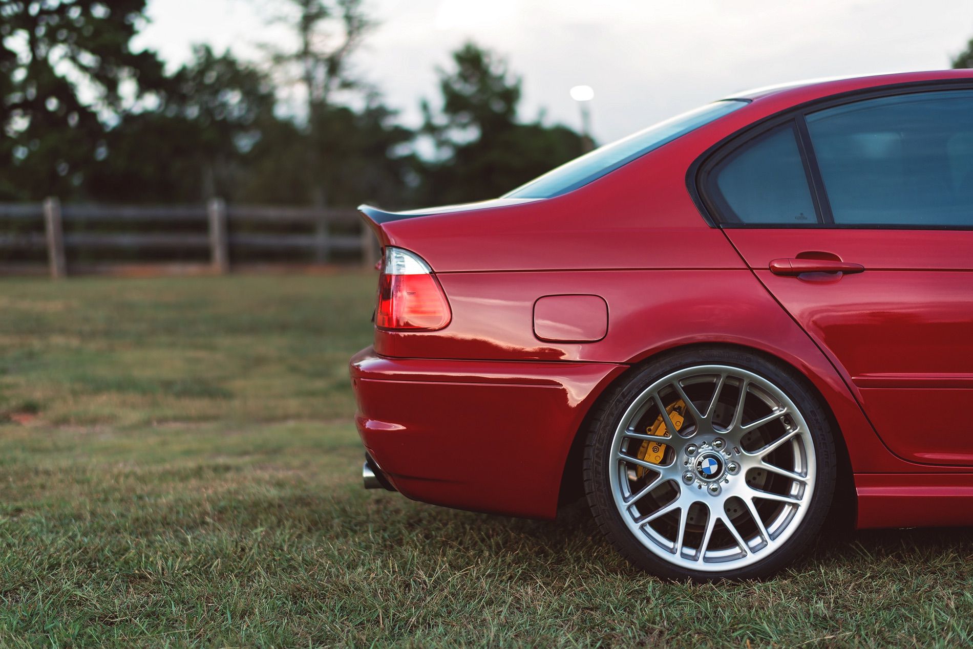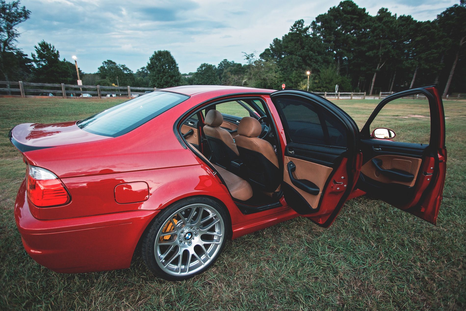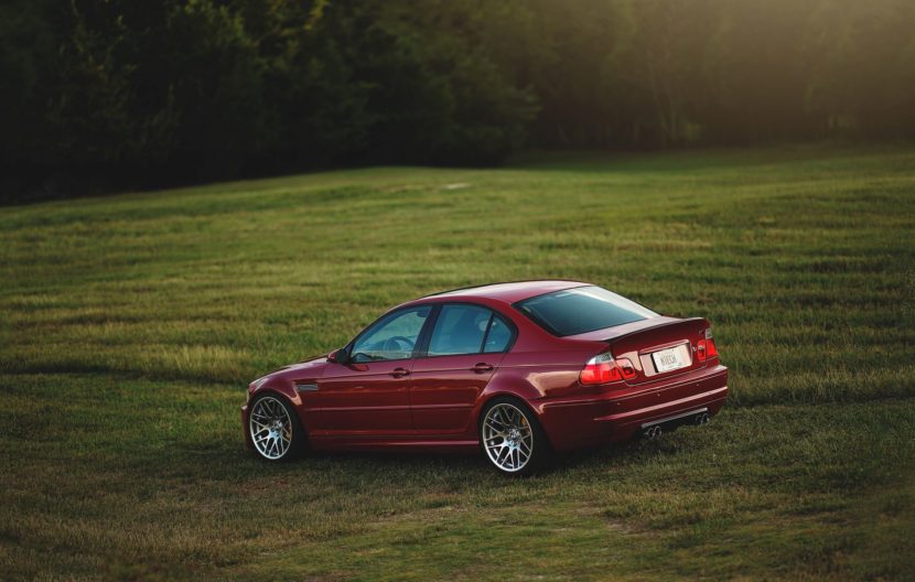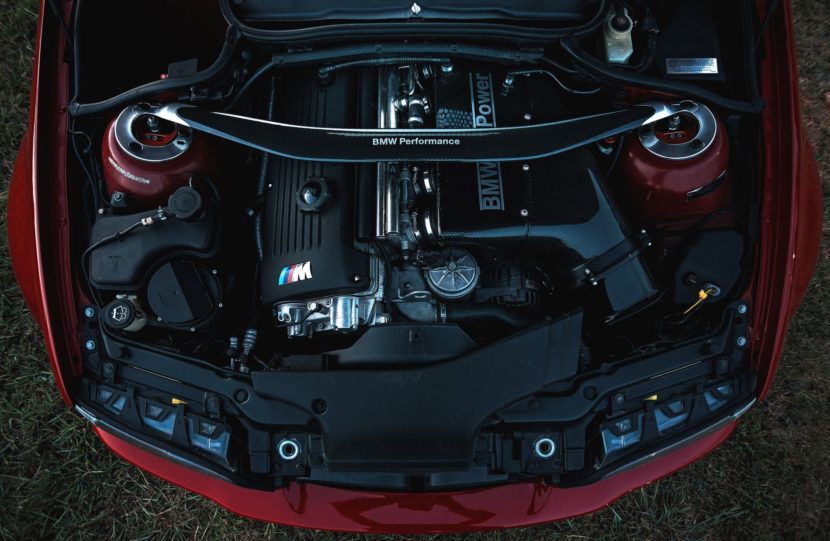 He drove the 330i ZHP with the S54 engine for about a year before he started to do a body conversion also. He had Superstar Customs in Lilburn, Georgia do the rear fender flares and contacted 2M Autowerks for their fiberglass front M3 sedan fenders. Born2doit customs painted the car in Imola Red and then he decided he wanted something close to an E46 M3 CSL sedan, so he added the OEM CSL wheels 19×9.5.