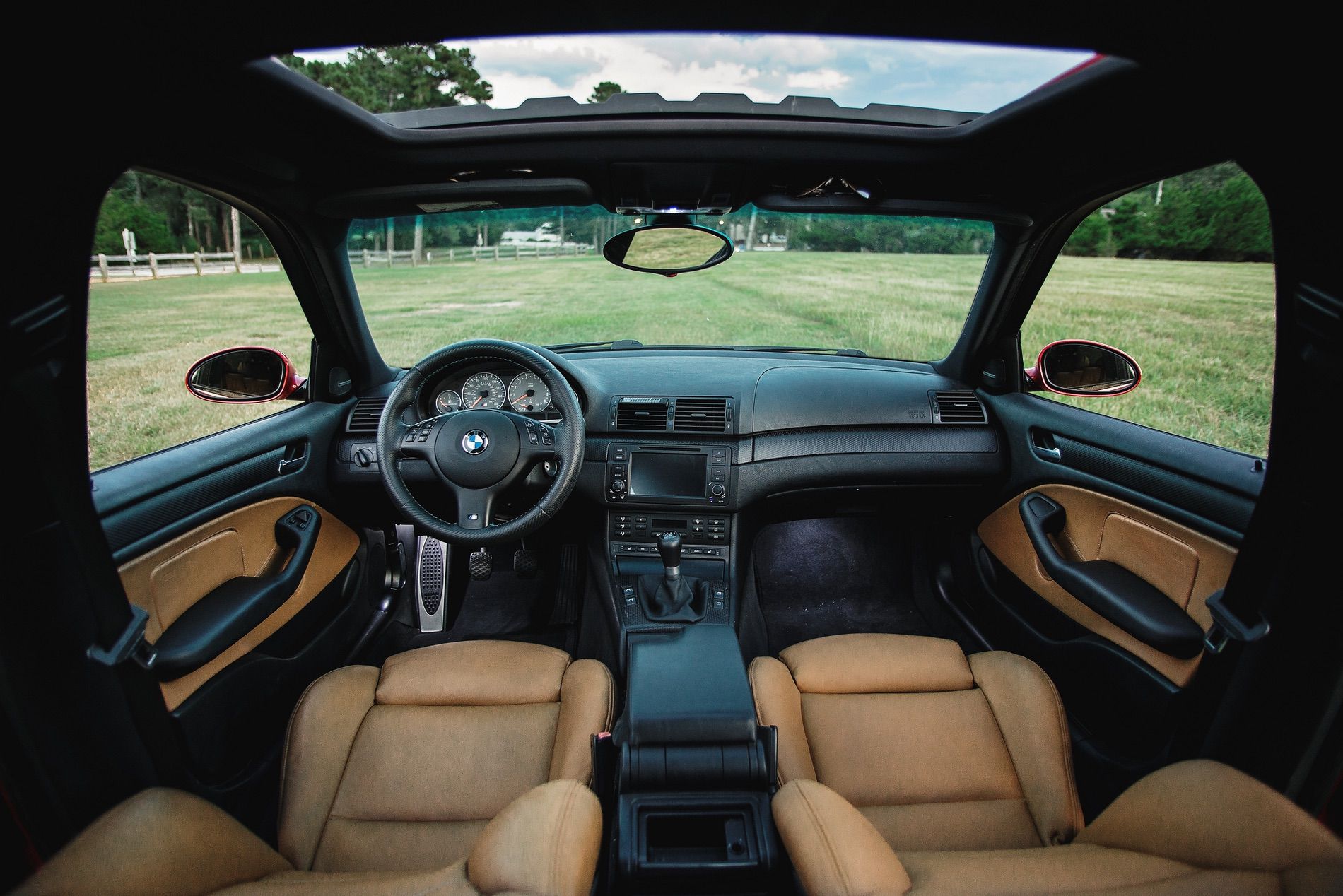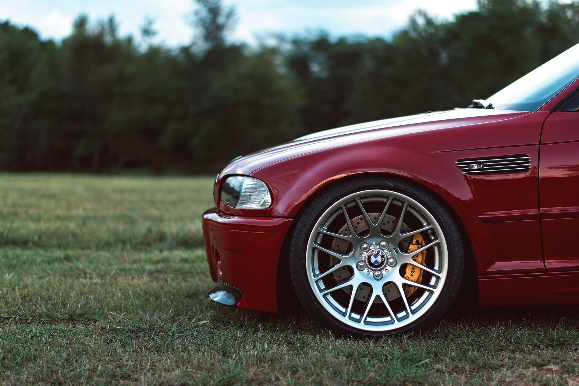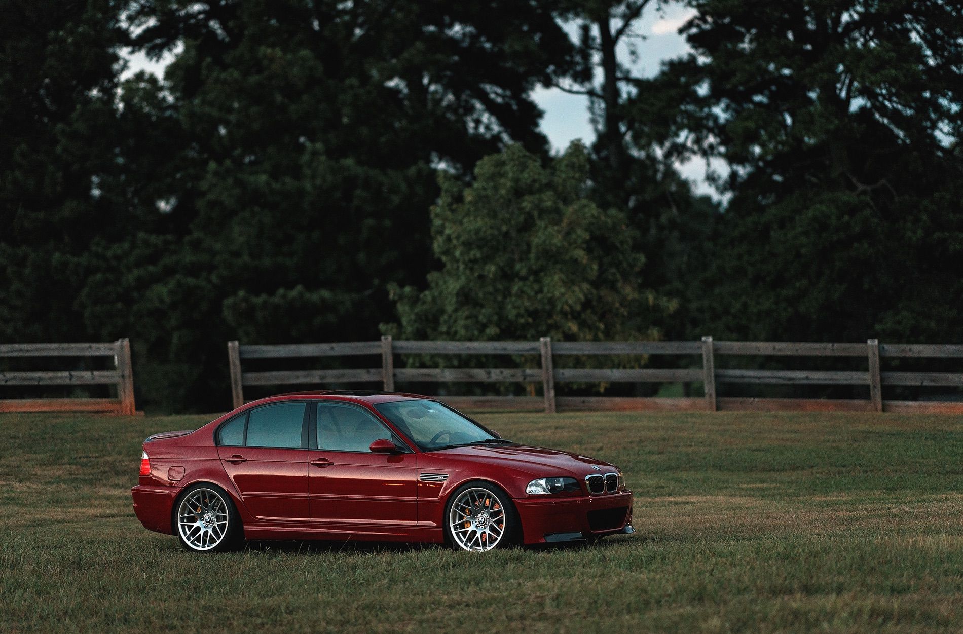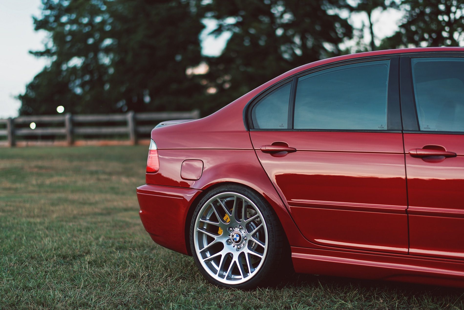 He drove the 330i ZHP with the S54 engine for about a year before he started to do a body conversion also. He had Superstar Customs in Lilburn, Georgia do the rear fender flares and contacted 2M Autowerks for their fiberglass front M3 sedan fenders. Born2doit customs painted the car in Imola Red and then he decided he wanted something close to an E46 M3 CSL sedan, so he added the OEM CSL wheels 19×9.5.