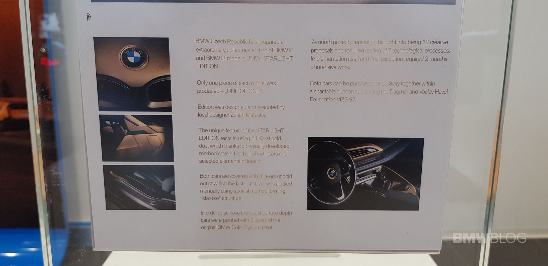 Earlier this year, BMW Group Czech Republic has prepared an exclusive edition of the BMW i8 and BMW i3, dubbed STARLIGHT Edition. The cars feature a unique two-tone design, in which the golden front passes smoothly into the black trim. The transition is reminiscent of the shining stars of the night sky, which is also the name of the edition. The cars were designed in collaboration with painter Miroslav Špičák and designer Zoltán Matuška.