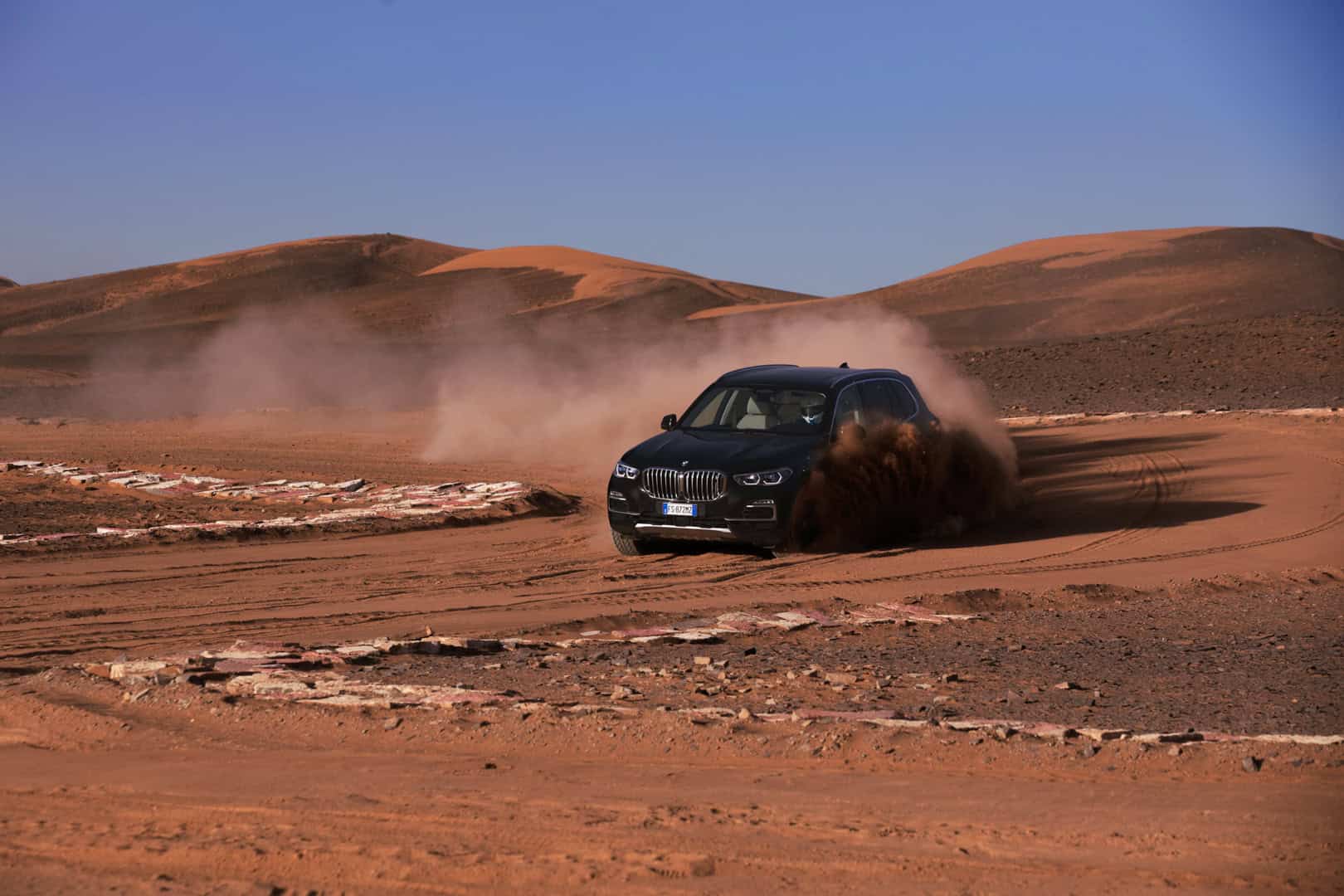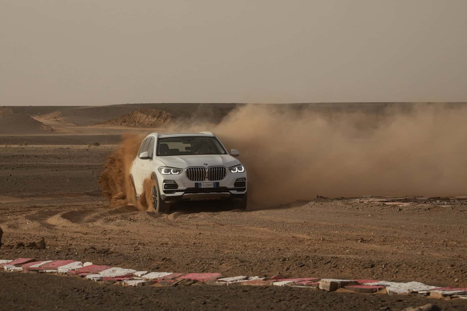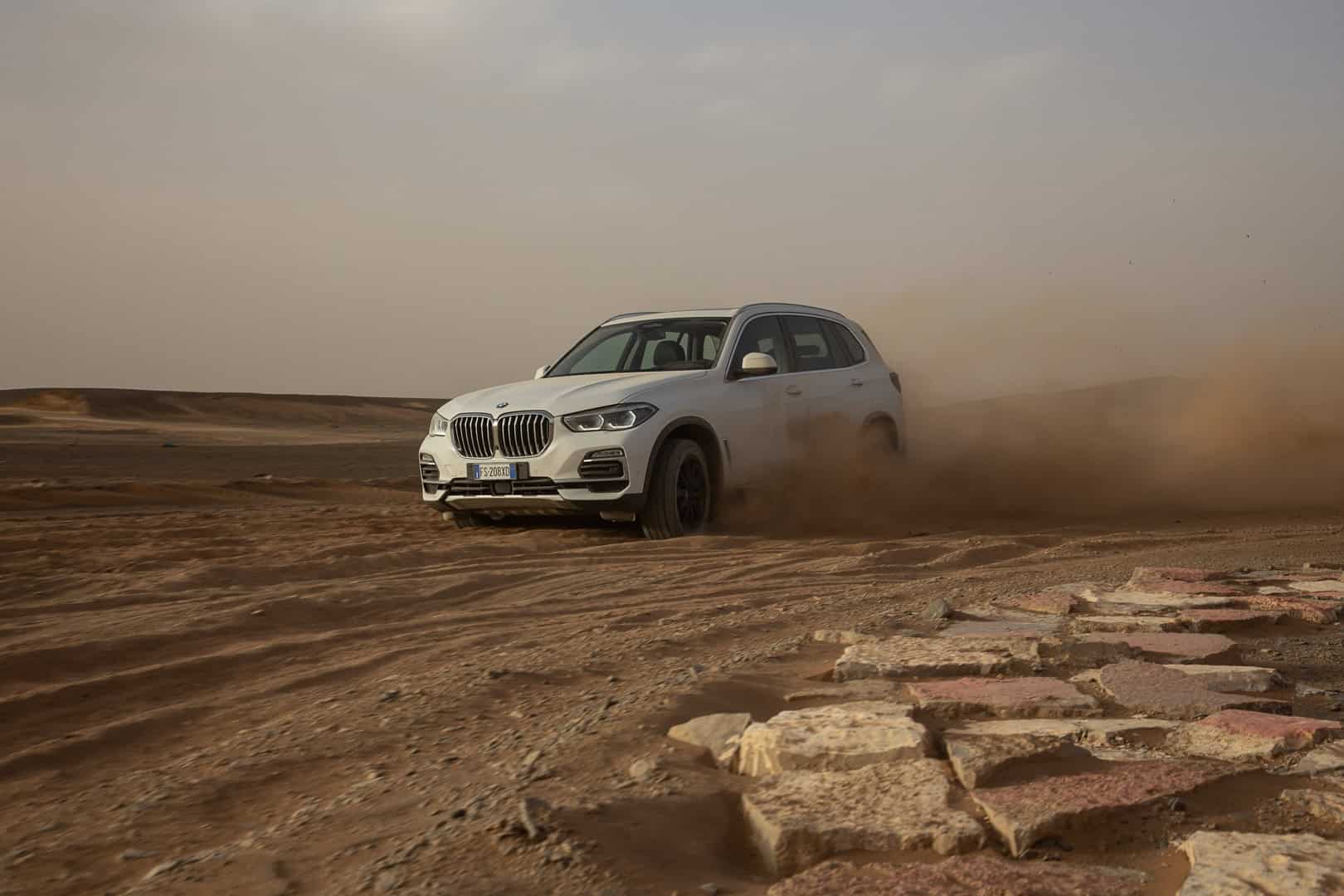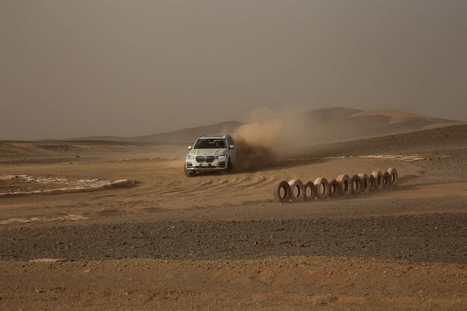 Now, no one is saying that the BMW X5 is a true off-roader. It’s never going to go rock climbing or tackle Moab. However, it’s more capable in some deep sand or muddy trail than people might think. The sloppy, loose sand of the Sahara isn’t exactly easy to traverse. Admittedly, it’s been plowed pretty flat here, but it’s still impressive to see the X5 do four-wheel drifts, kicking four rooster tails of sand into the air.