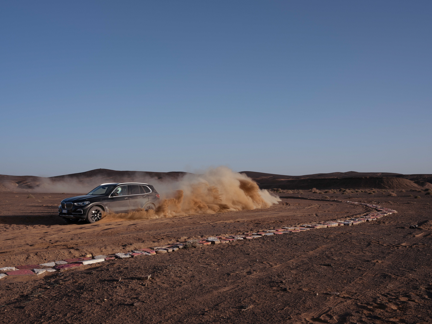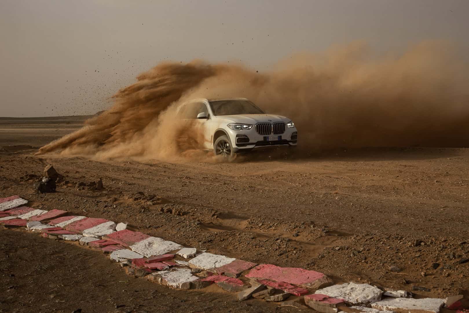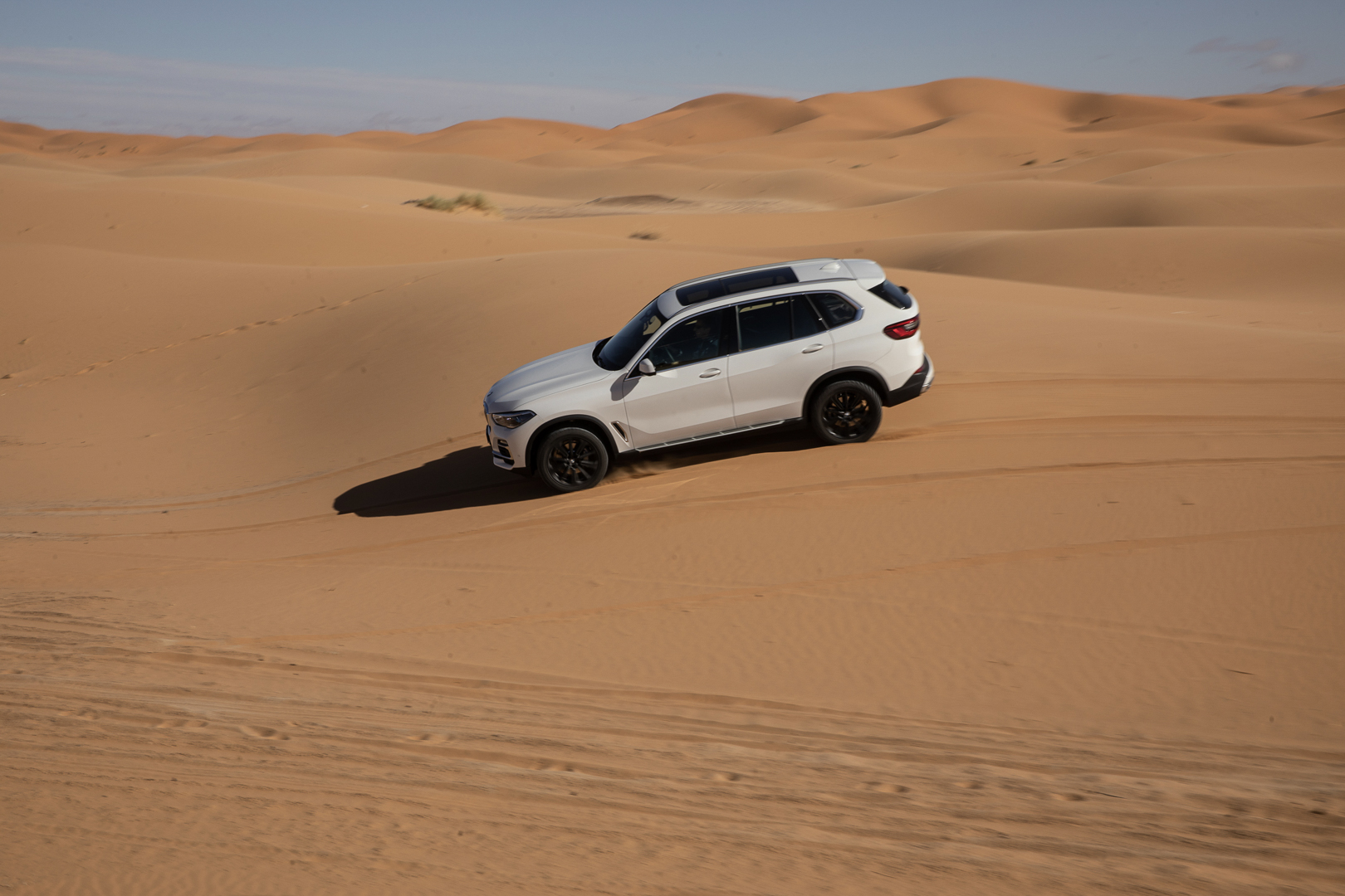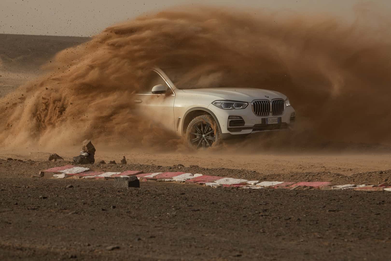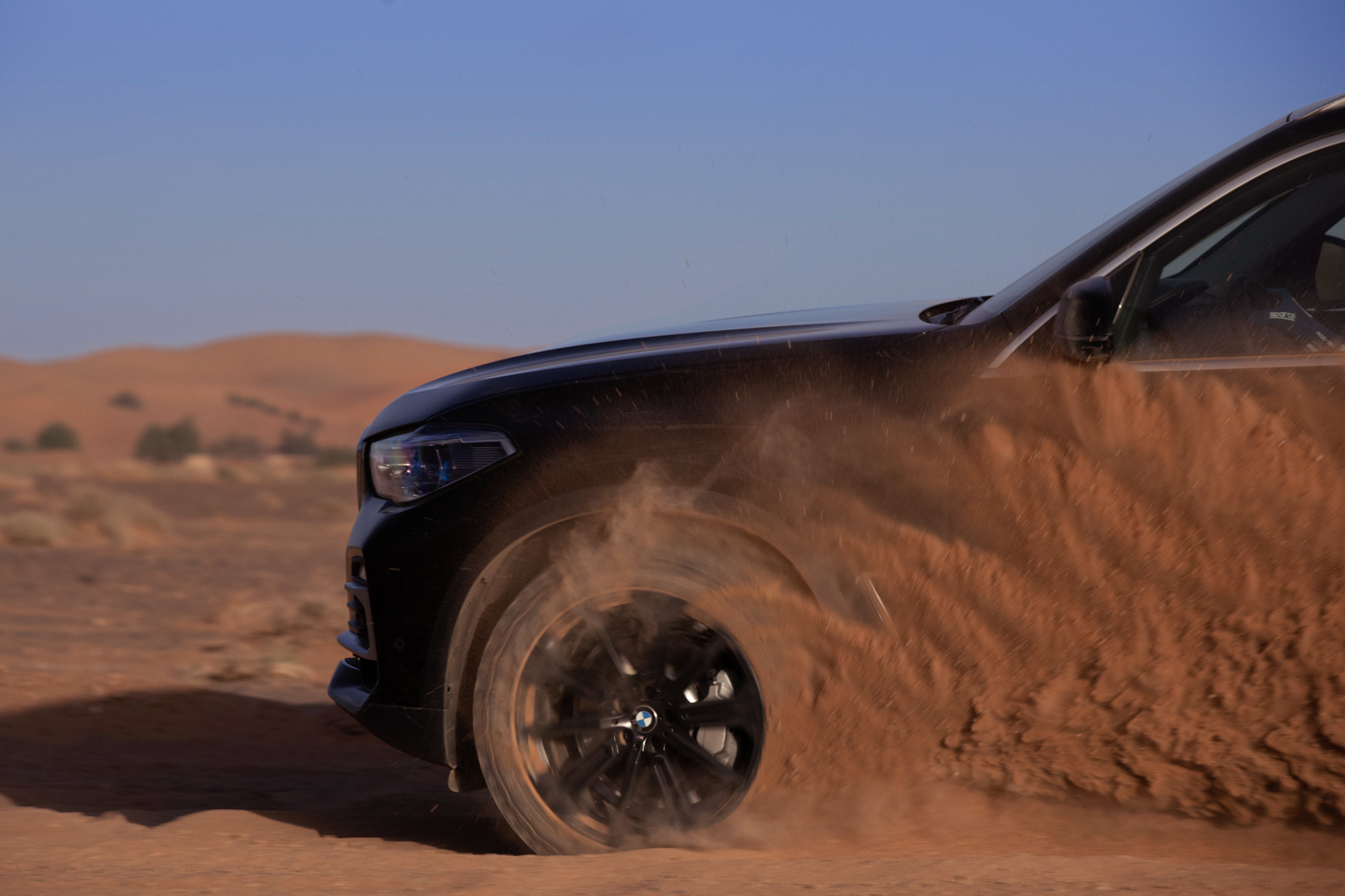 Now, no one is saying that the BMW X5 is a true off-roader. It’s never going to go rock climbing or tackle Moab. However, it’s more capable in some deep sand or muddy trail than people might think. The sloppy, loose sand of the Sahara isn’t exactly easy to traverse. Admittedly, it’s been plowed pretty flat here, but it’s still impressive to see the X5 do four-wheel drifts, kicking four rooster tails of sand into the air.