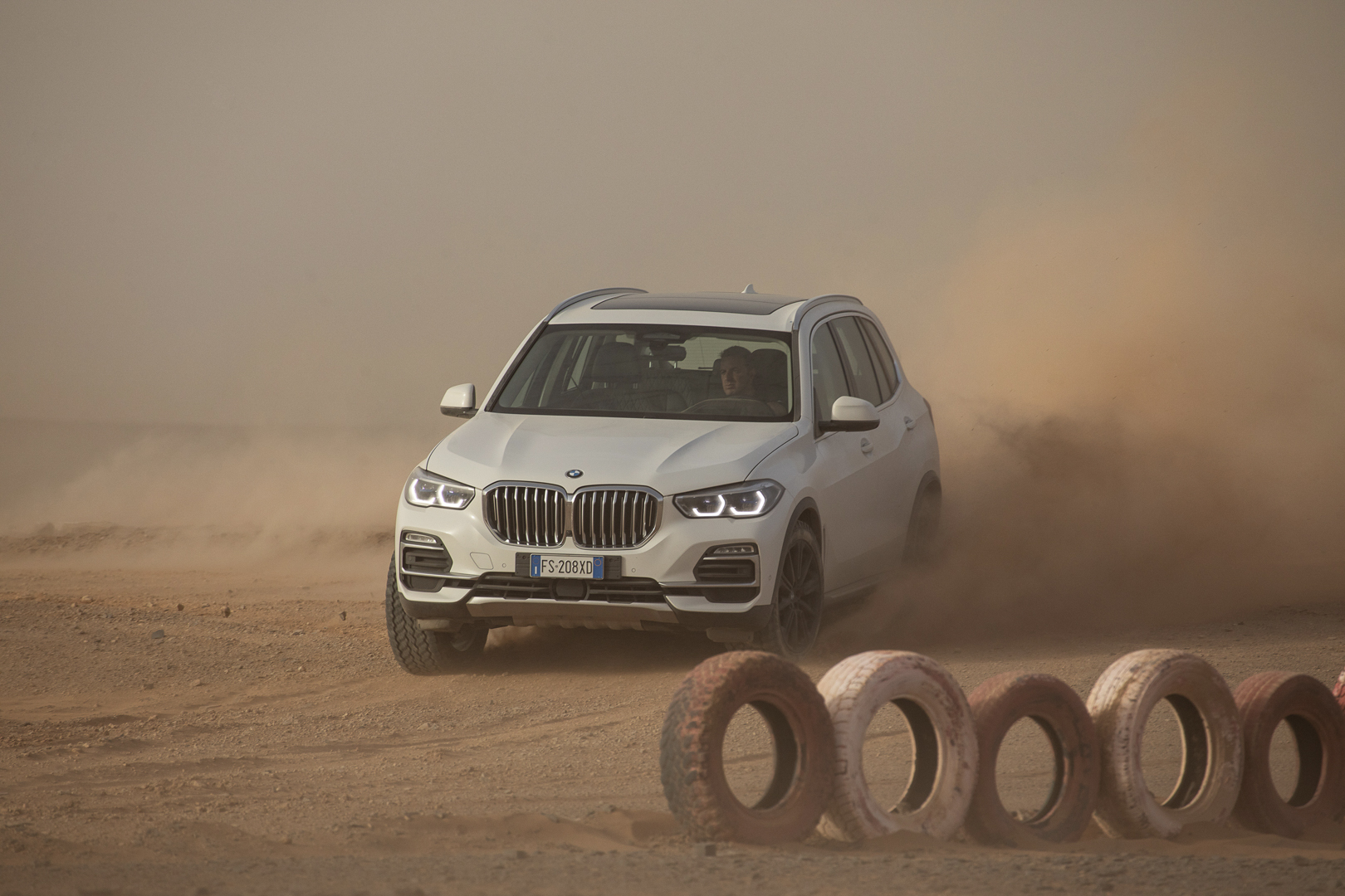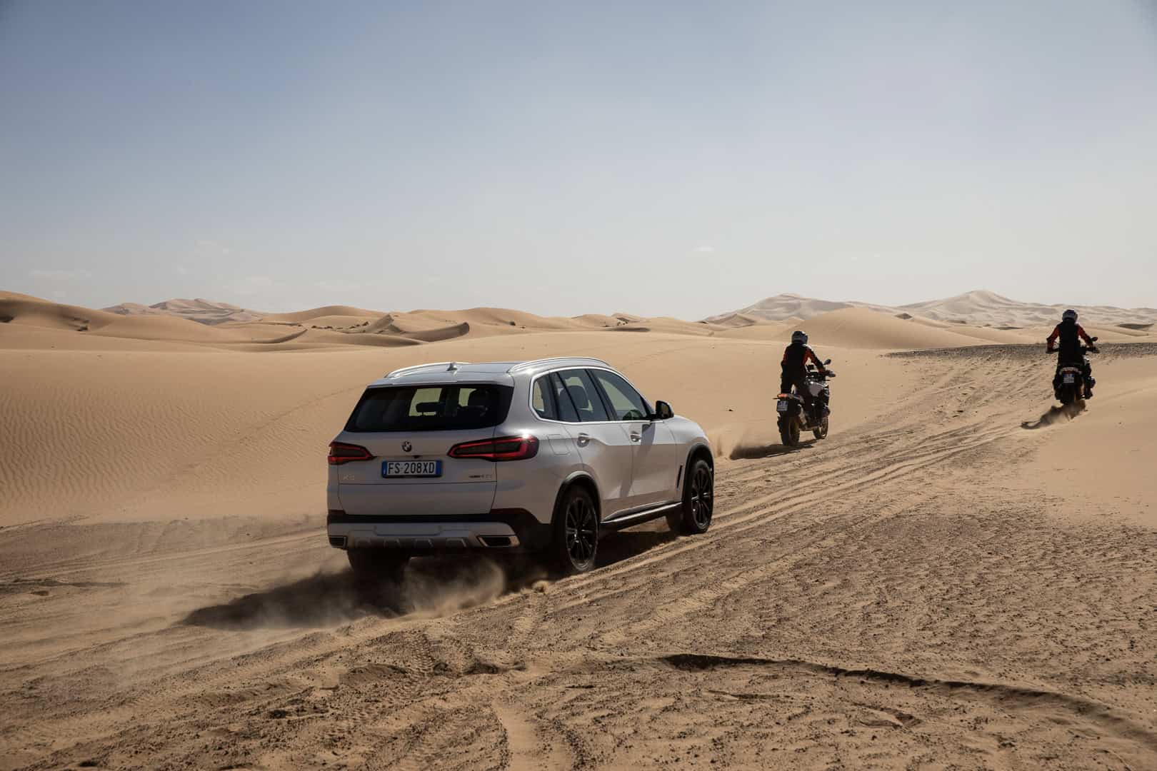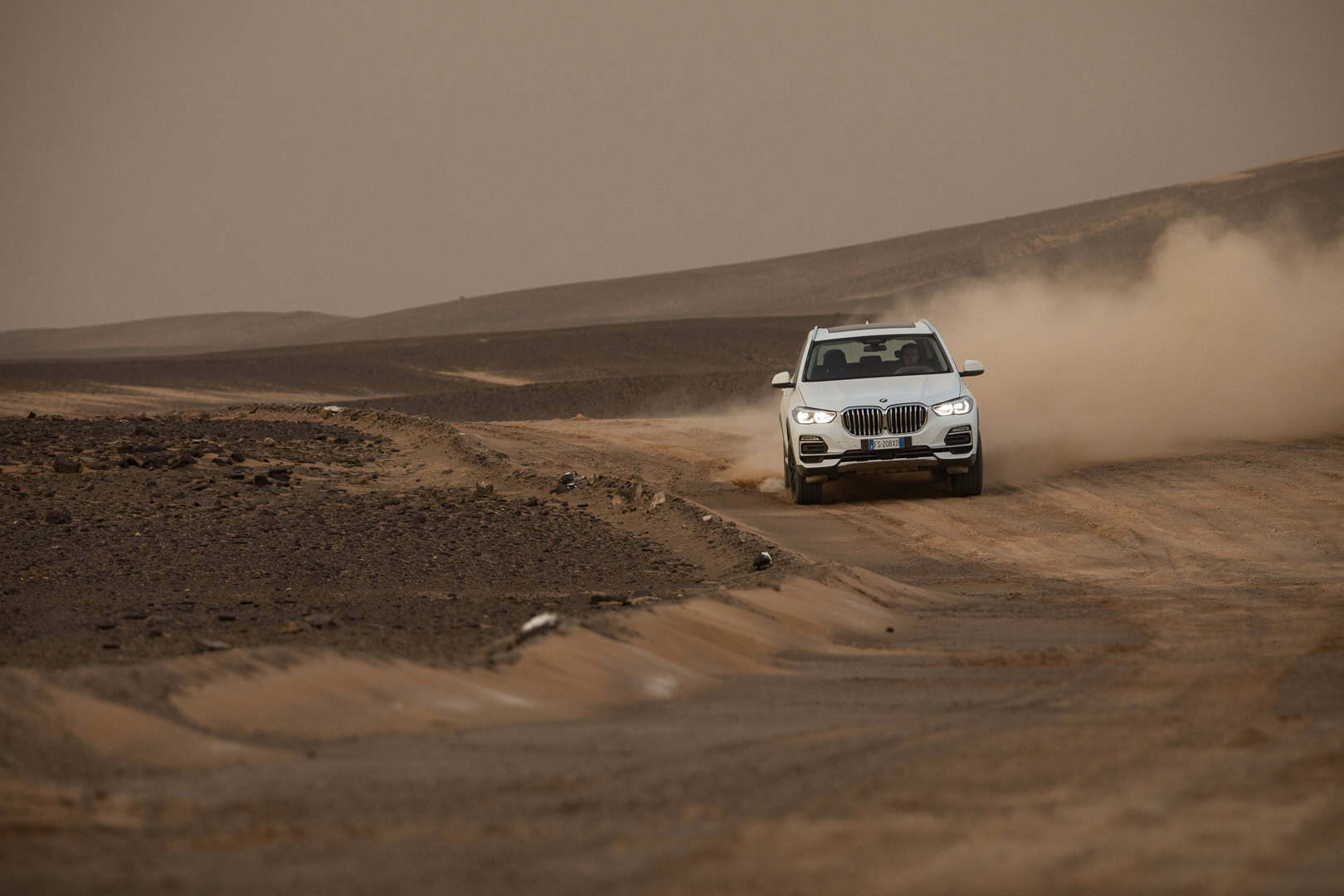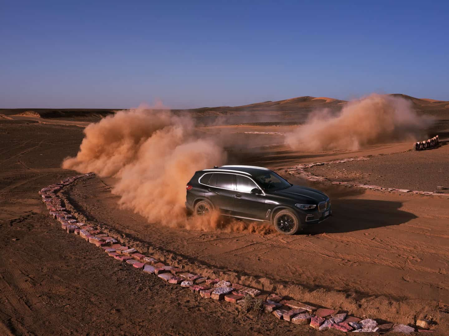 Now, no one is saying that the BMW X5 is a true off-roader. It’s never going to go rock climbing or tackle Moab. However, it’s more capable in some deep sand or muddy trail than people might think. The sloppy, loose sand of the Sahara isn’t exactly easy to traverse. Admittedly, it’s been plowed pretty flat here, but it’s still impressive to see the X5 do four-wheel drifts, kicking four rooster tails of sand into the air.