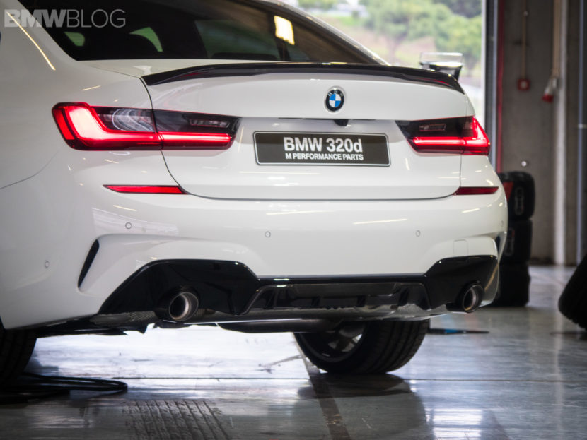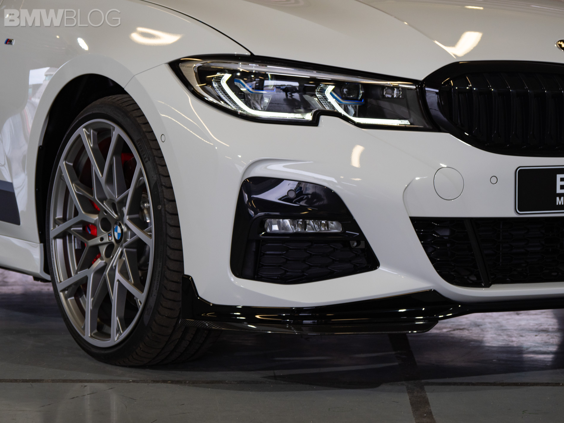 Today we bring you the first real life photo gallery of the new BMW 3 Series equipped with M Performance Parts. The Alpine White G20 320d was the model of choice to highlight the latest and greatest aero parts for the new 3er. The add-ons are meant to emphasize the aggressive design of the M Sport models and offer a bit more performance at the same time.