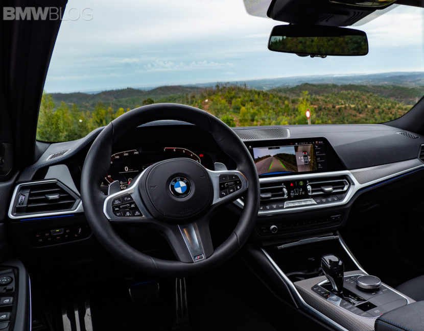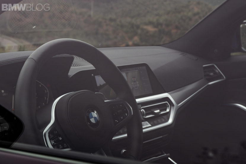 The images shown below were captured on our way to the Portimao race track in Algarve, Portugal showcasing once again the great combination of the blue color and the M Sport Package. Speaking of the M Sport package, on the new G20 3 Series, the sporty and dynamic kit is now more aggressive than ever with large air intakes in the front bumper that serve as air ducts and house the fog lights. Part of the M Sport package are also the large vertical vents in the rear bumper and 19-inch trim-specific wheels.