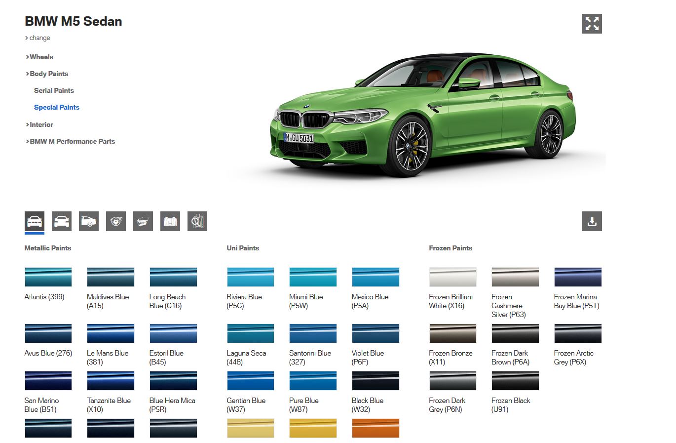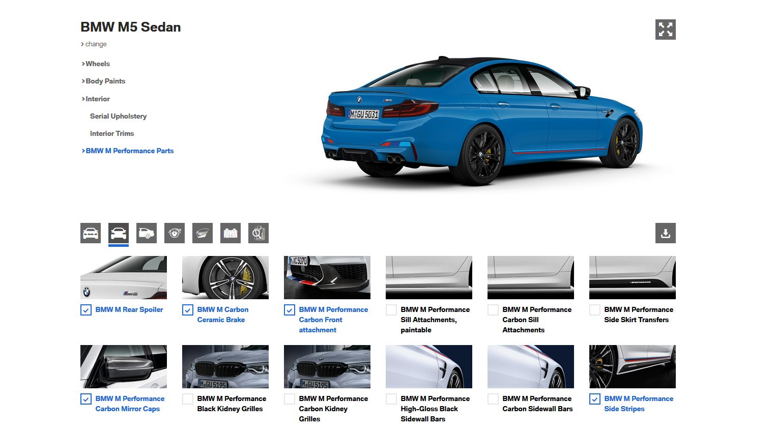 This visualizer also includes a section for the interior where you can also choose a combination worthy of the car’s exterior. You’ll also get to see how the car looks like with a couple of M Performance Parts. From spoilers and splitters to wings and stripes, you can configure your car the way you want, depending on the choices available for each one. The visualizer includes the 3 Series range, 5 Series range as well as a couple of M models (M4 and M5 with their various body styles and/or competition versions).