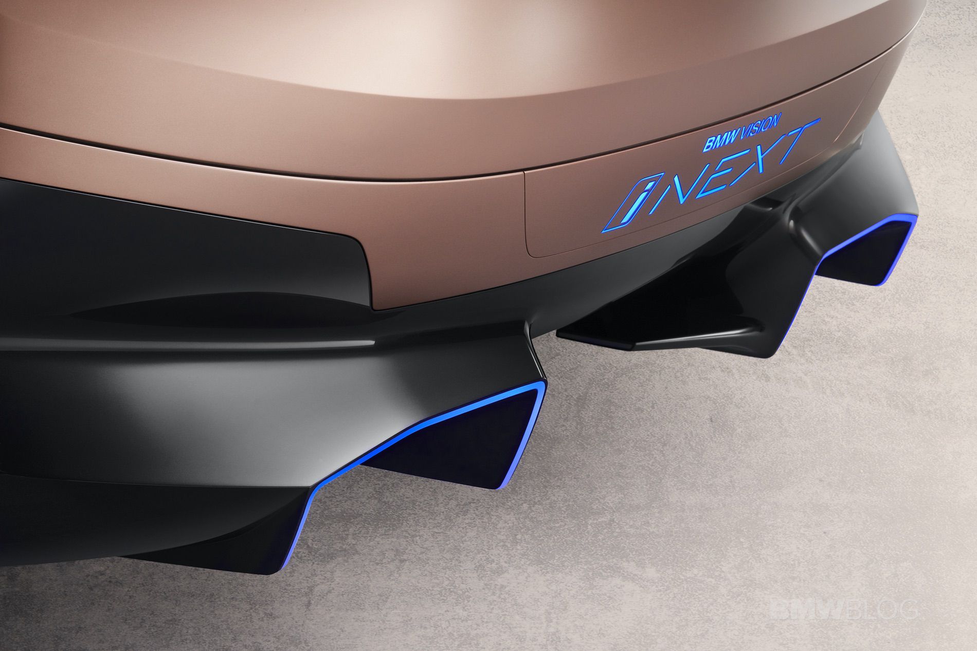 BMW chose to give the Vision iNEXT Concept a crossover body style, or SAV, so as to give it a bit of a “trailblazer” vibe. The Vision iNEXT features a modern take on the classical BMW double headlamps, paired with slim laser lights, while cameras replace the side mirrors. At the rear, the slim rear lights follow the same design pattern.