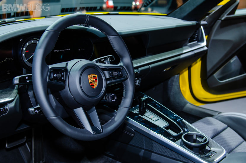 This new Porsche 911 gets a revised turbocharged flat-six to start, making 443 hp. That’s not the base engine, though, as only Carrera S models will be available at launch. Still, the Carrera S is the most commonly bought 911, so it’s the engine that matters. Paired to that engine will be one of two gearboxes; either seven-speed manual or, more likely an all-new eight-speed dual-clutch PDK. The latter of which is what’s seen in the photos, with its little toggle switch gear lever.