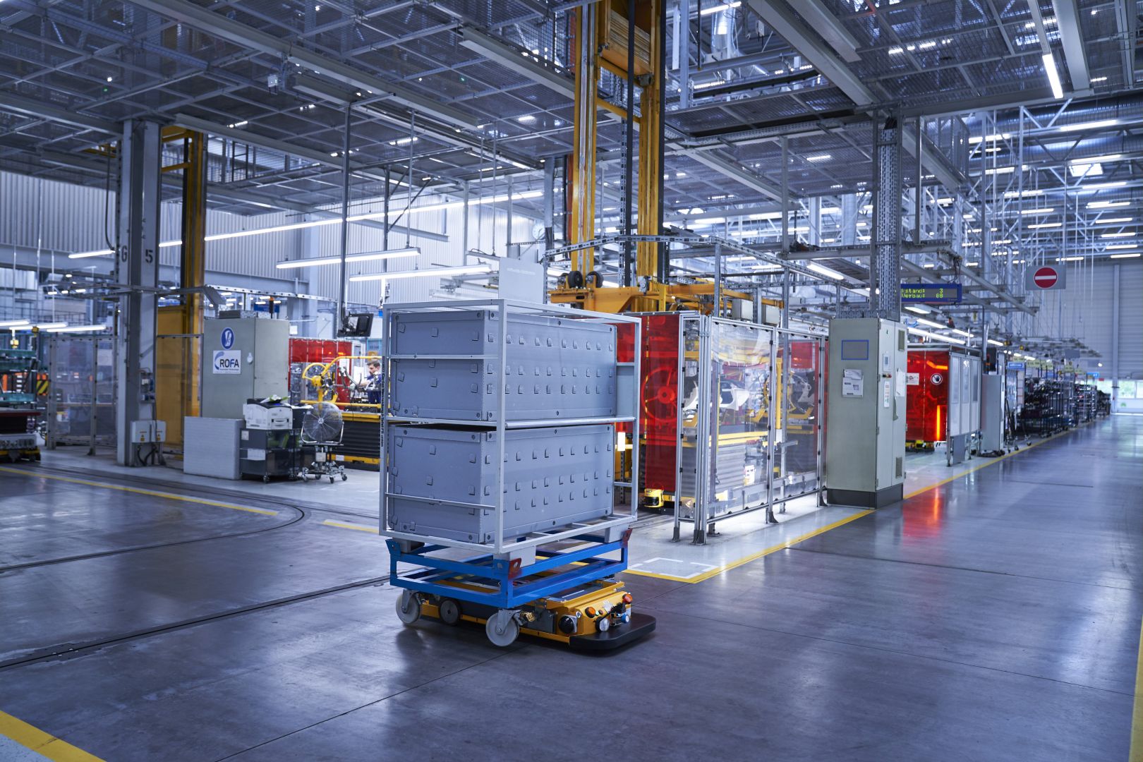 Smart watches are also used, notifying workers of various task and even approaching tugger trains, while truck trailers can move autonomously inside the plants through the AutoTrailer function, with a payload of up to 30 tons, using laser guidance. Furthermore, robots are being used to load and unload these trucks, using artificial intelligence to detect and process various different containers and determine the ideal grip point.