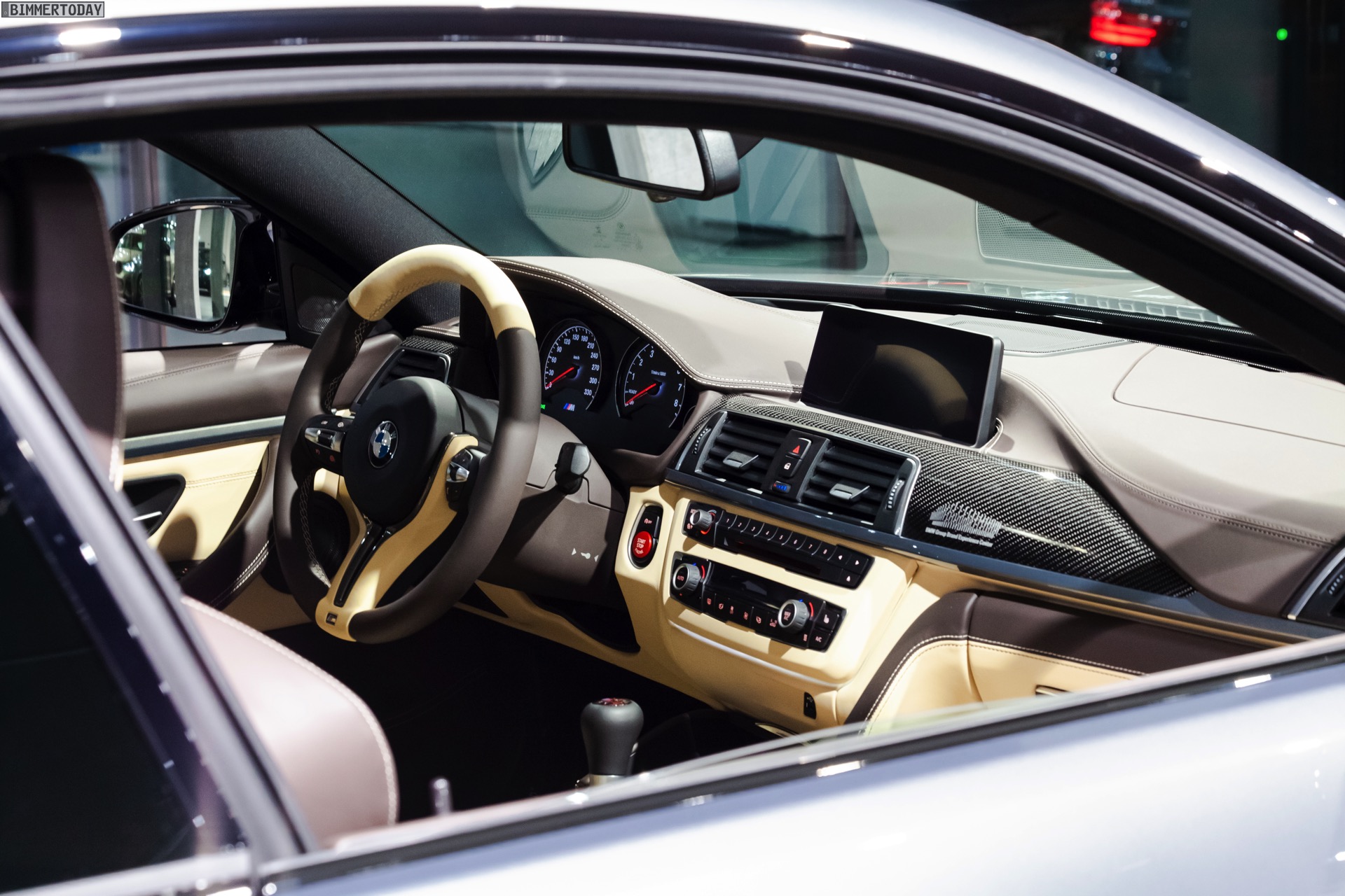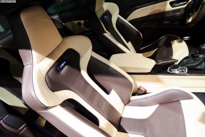 To further enhance the sportiness of the M4’s cabin, the interior trim is made of carbon fiber, which matches perfectly with the dark accents of the exterior, thanks to the standard carbon roof and the black elements of the Competition Package.