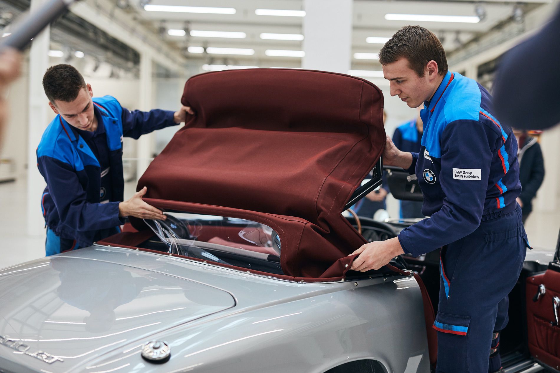 BMW Group Classic gets another unique special under its roof. The vocational training team at the BMW plant in Dingolfing restored the BMW 1600 GT convertible in a project lasting several years under the guidance of their trainers. The four-seater painted in silver has a red hood and its unusual history makes it a revealing representative of the time when the company BMW made the transition from being a niche automaker to a mass-production car manufacturer enjoying steady growth in success and an international reputation.