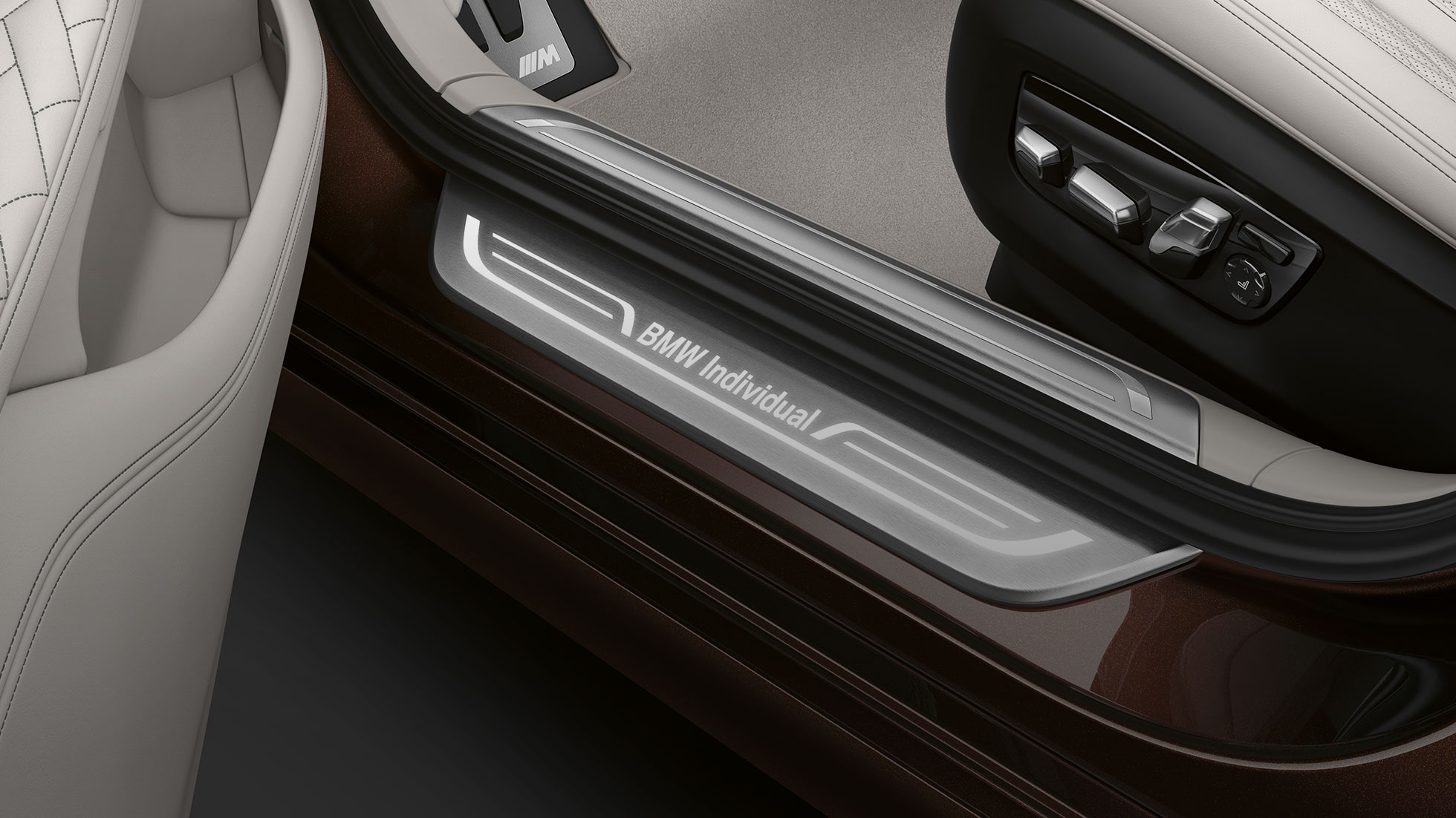 Inside the 7 Series Individual, BMW included fine-grain Merino full leather trim – which is available in six colors and features not only extended quilting but also contrast stitching and piping – uses materials of the very finest quality. The door shoulders, the upper part of the instrument panel and the lower part of the door linings are finished in fulled leather with this option.
