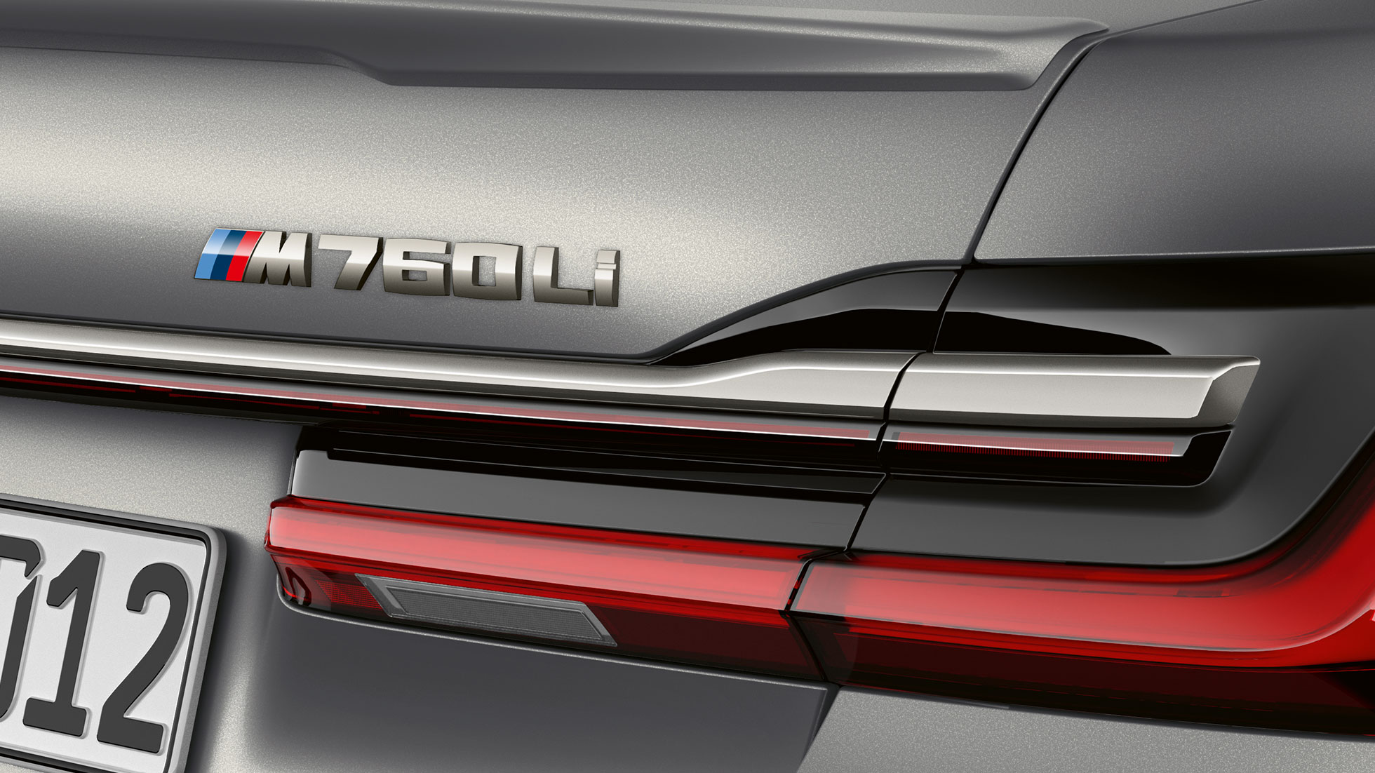 Visually, the new BMW M760Li xDrive stands out with the kidney grille surround and kidney grille bars in Cerium Grey. The BMW M760Li also comes with a bespoke interior design. In addition to the M leather steering wheel, the BMW Individual headliner in Anthracite, the M pedals, the M driver’s footrest and the comfort seats upholstered in Exclusive Nappa leather with extended appointments, this 12-cylinder model is equipped as standard with Fineline Black fine wood interior trim strips with high-gloss metal effect, a digitally generated model badge in the instrument cluster, an insert in the center console in Piano Finish Black and illuminated door sill plates bearing the inscription “V12”.