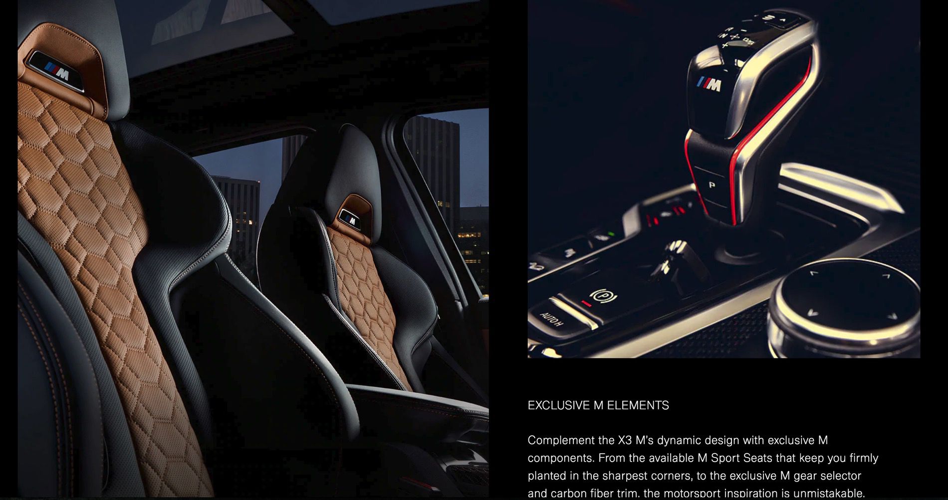 The M Sport brakes are standard on all the models. The inside of the two M SAVs is just as impressive. The M Sport seats feature a unique design and leather combination, while the carbon fiber trim surrounds the cabin. There is also the M gear selector from the F90 M5.
