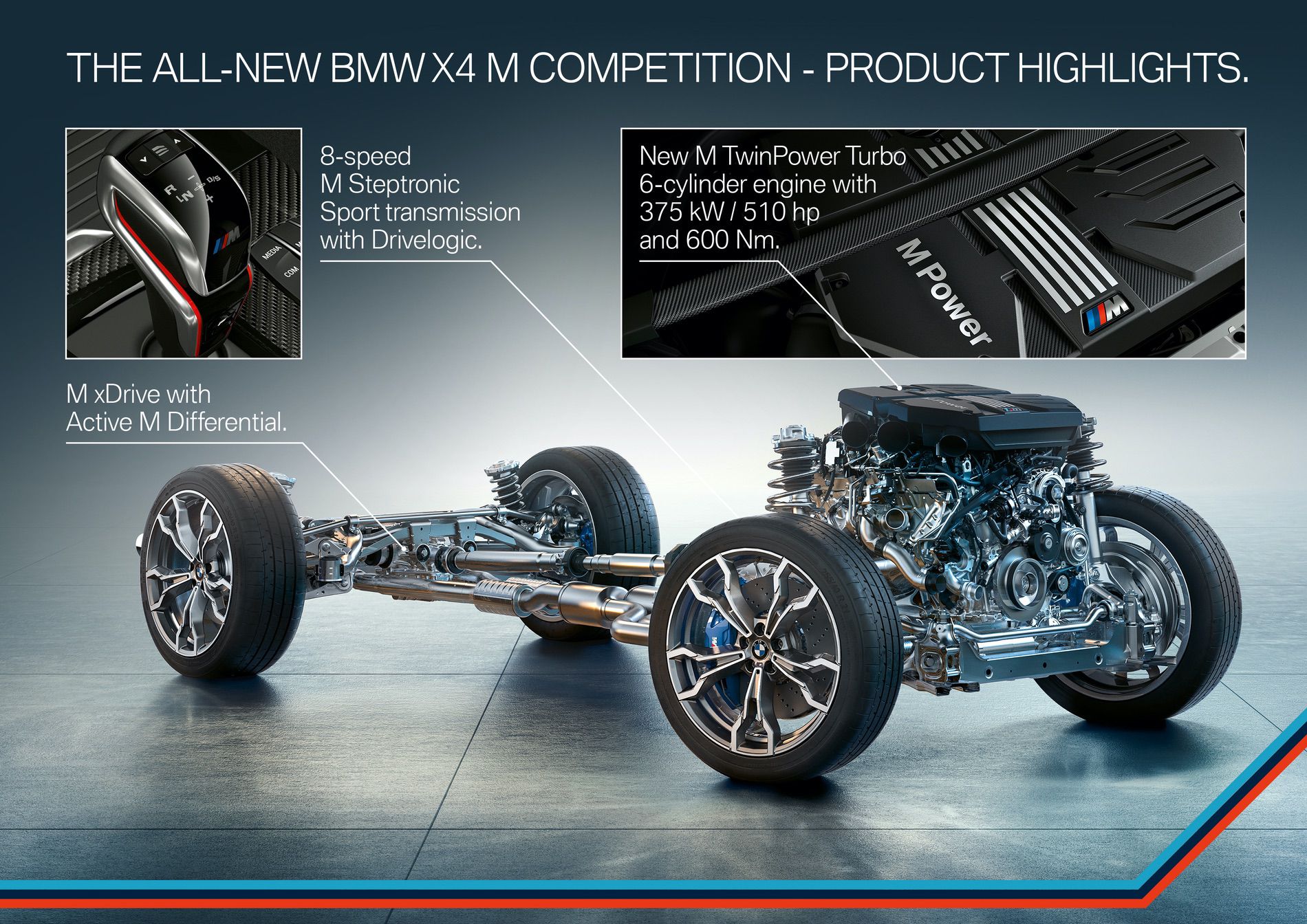 Debuting alongside the BMW X4 M is the Competition model, which will pack a whopping 510 hp and the same 442 lb-ft. That makes the new X4 M faster than the BMW M4 GTS was. It’s also more powerful than an Alfa Romeo Stelvio Quadrifoglio, a Mercedes-AMG GT and a Porsche 911 GT3. So it’s got some serious punch.