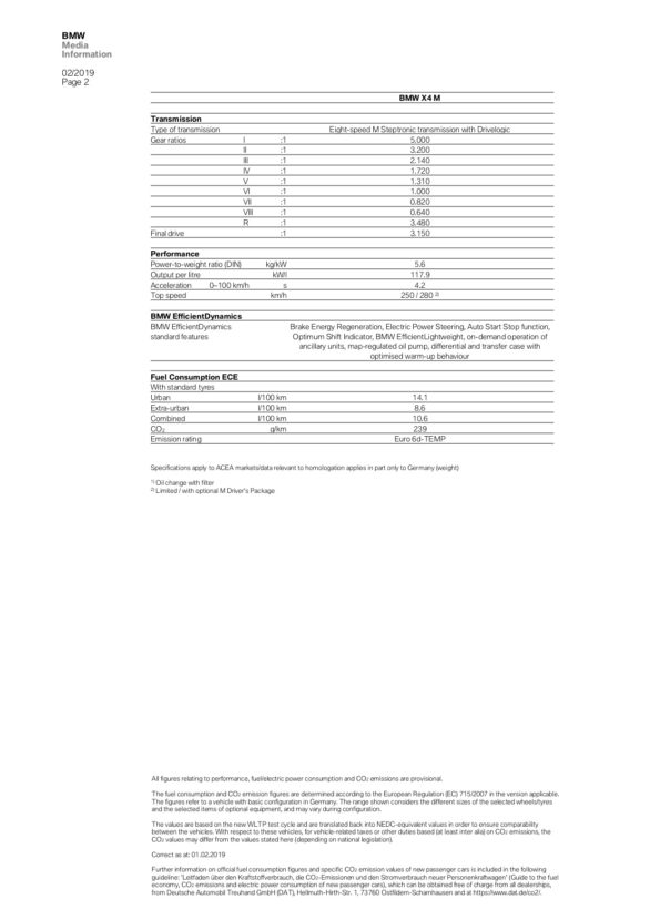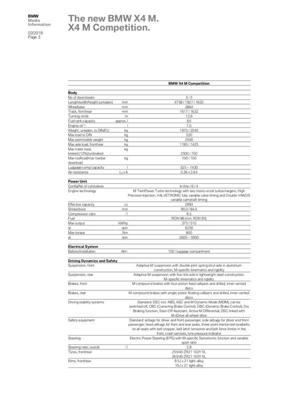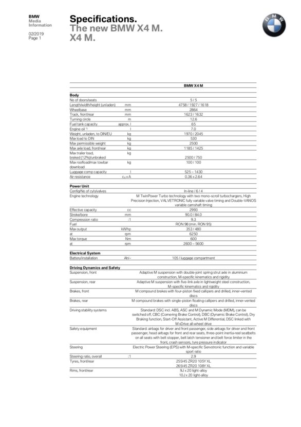 BMW claims a 0-62 mph time of 4.2 seconds for the standard car, with the Competition model shaving a tenth off of that. We suspect it will be quicker, though, breaking into the three-second range. Especially when you consider the X4 M40i is capable of 0-62 mph in the low four-second range with a lot less power.