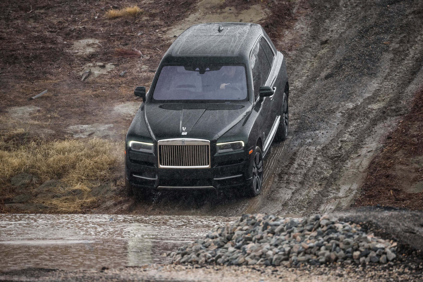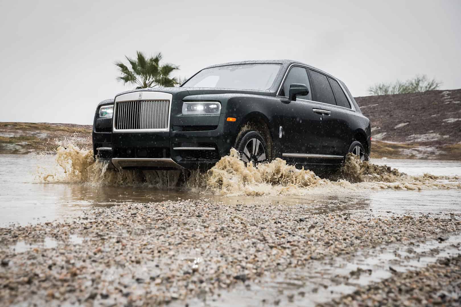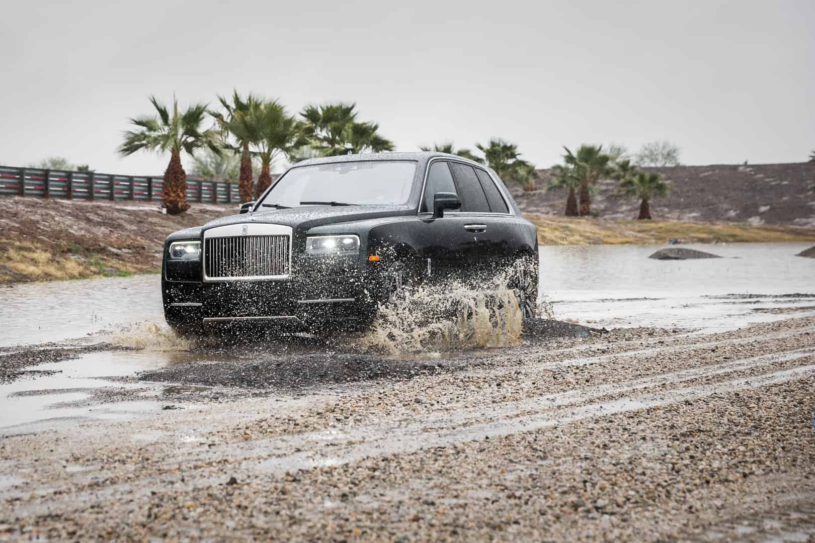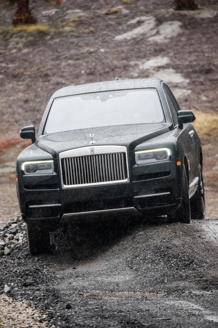 That’s because its calm demeanor does belie its rugged capability and Rolls Royce was proud to prove it in Palm Springs. BMW and Rolls had set up an off-road course, to show off the capabilities of the X7 and Cullinan, respectively. Surprisingly, the big Roller did very well. It’s not often you see mud on a Rolls Royce, and seeing dirty footprints in the lamb’s wool carpets was actually painful, but it was an impressive sight nevertheless. Like watching watching an Elephant play rugby in a tuxedo.