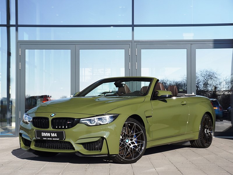 Another Urban Green-painted BMW is now provided by the Cuntz Speyer Neustadt car dealership, where recently a BMW M4 Competition Convertible was up for sale. The 450 hp Cabriolet combines the green exterior color with black accents and the eye-catching 20-inch 666 M wheels of the Competition package.