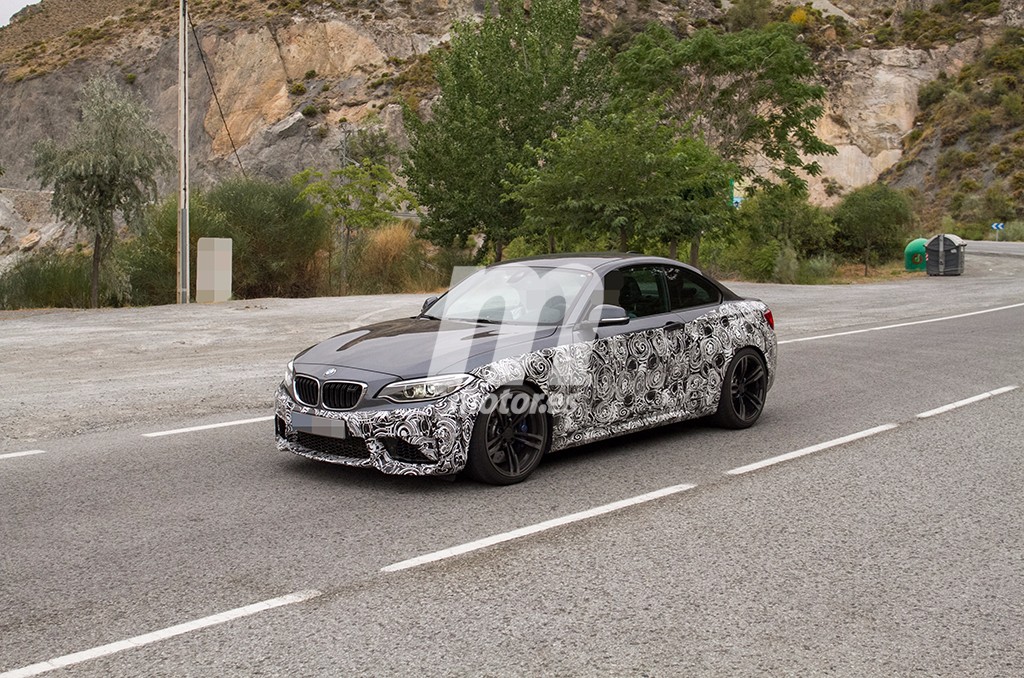 Out back, the BMW M2 CS gets a new rear decklid spoiler, which is also covered in camo here. It’s quite large, actually, and reminds us of the one found on the E46 M3 CSL. Below that new spoiler, a new diffuser sits in between its exhaust pipes and makes the back end look very sporty.