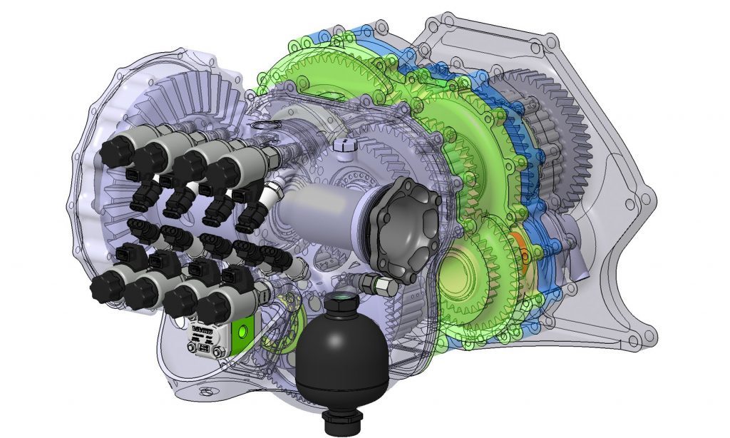 The last clutch, clutch eight, is used by the Light Speed Transmission to select one of two output ranges, low or high. (Not unlike a transmission found on a tractor-trailer truck.) By engaging the ‘low’ output, the Light Speed Transmission serves up its first six forward gears. When the ‘high’ output is engaged the Light Speed Transmission reuses, we believe, the 4th, 5th, and 6th gears as 7th, 8th, and 9th.