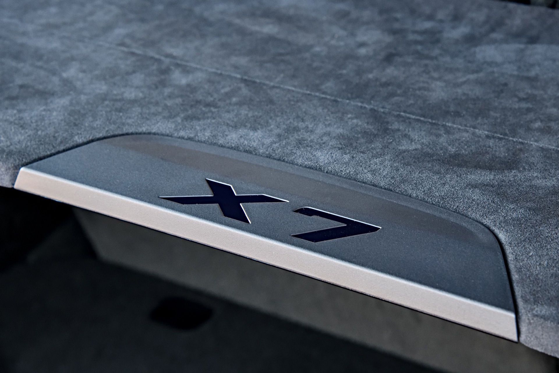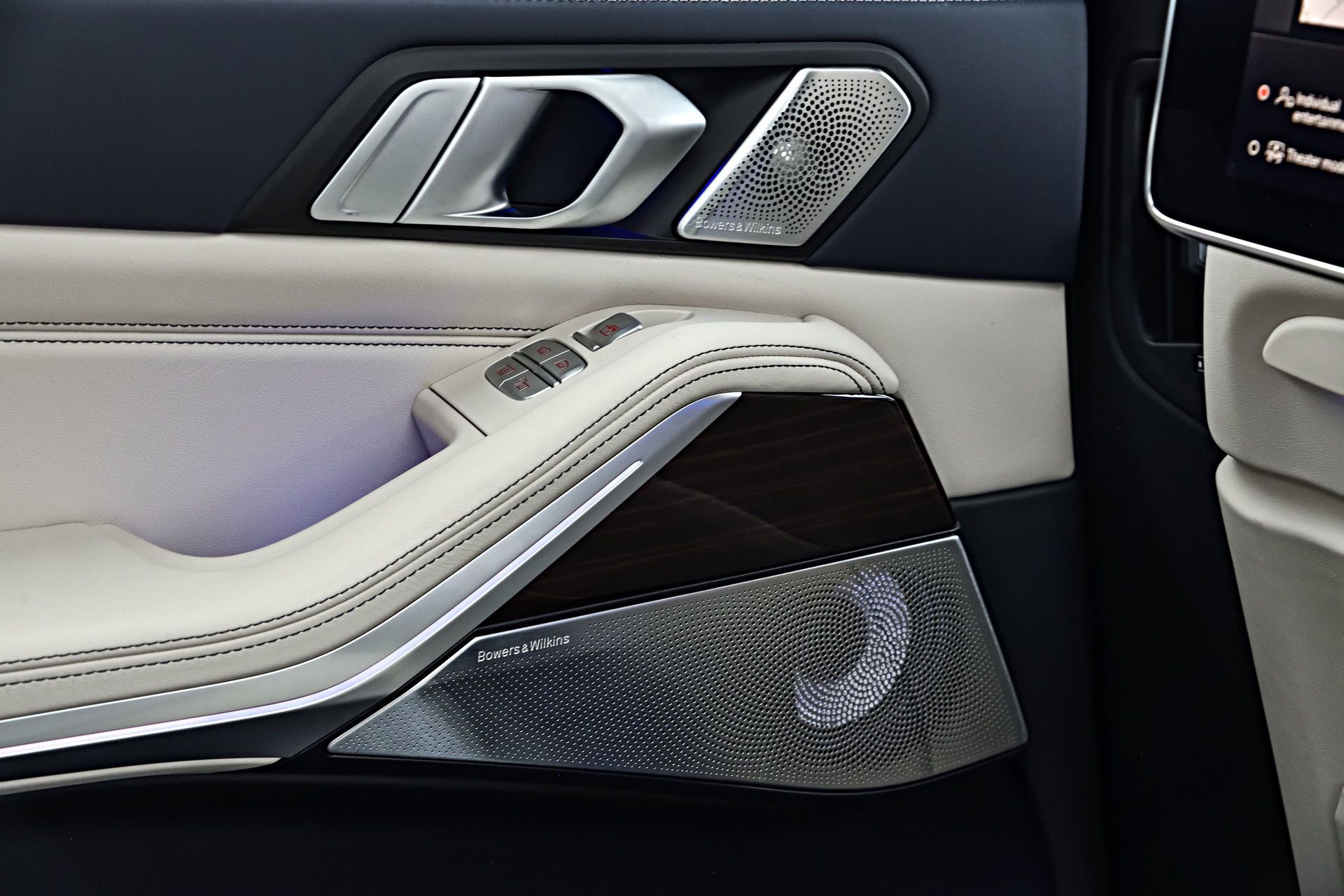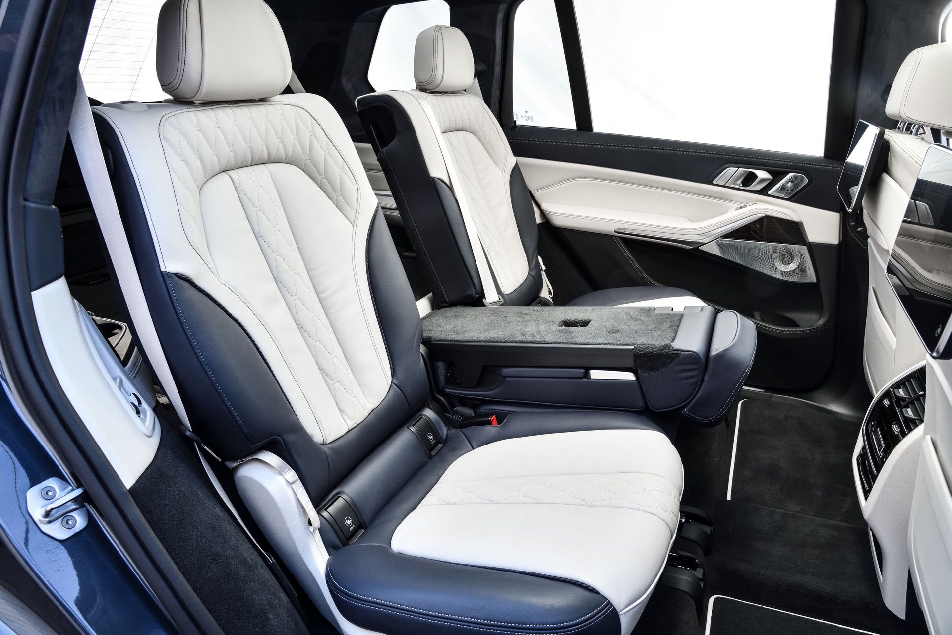 Inside, you’re getting a variation of different upholsteries – SensaTec Black, nine premium Vernasca and Extended Merino Leathers (in the X7 xDrive40i for the US market). The two-tone Ivory White/Navy Blue Full Leather Merino interior, with a Navy Blue leather dashboard and a Navy Blue Alcantara headliner, can be specified for some models. More on that particular combination in our next BMW X7 article.