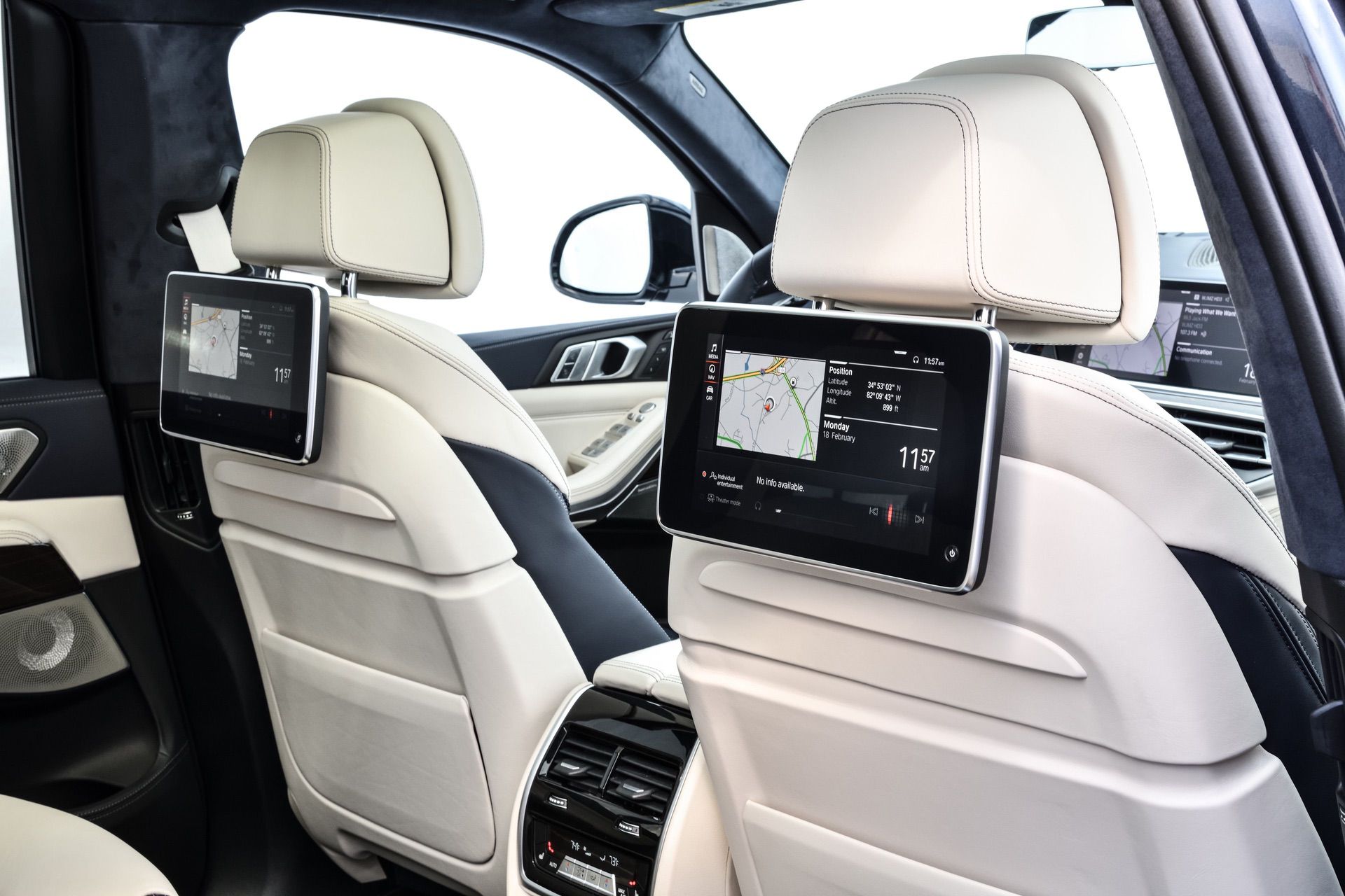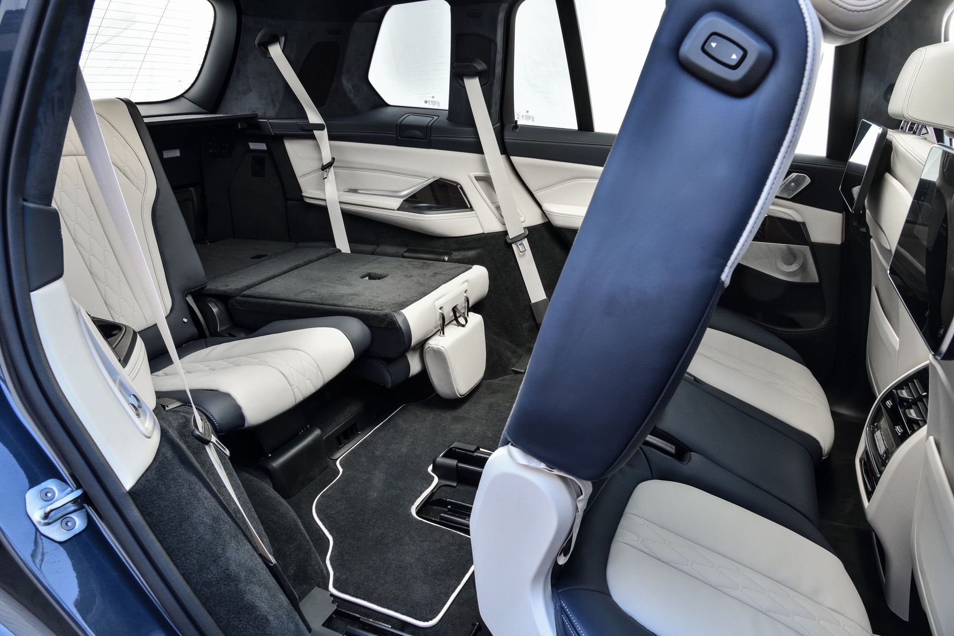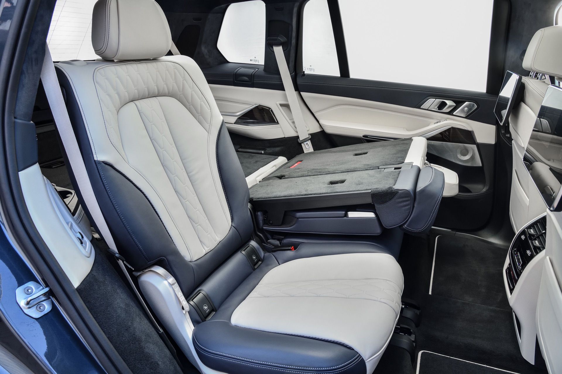 Inside, you’re getting a variation of different upholsteries – SensaTec Black, nine premium Vernasca and Extended Merino Leathers (in the X7 xDrive40i for the US market). The two-tone Ivory White/Navy Blue Full Leather Merino interior, with a Navy Blue leather dashboard and a Navy Blue Alcantara headliner, can be specified for some models. More on that particular combination in our next BMW X7 article.