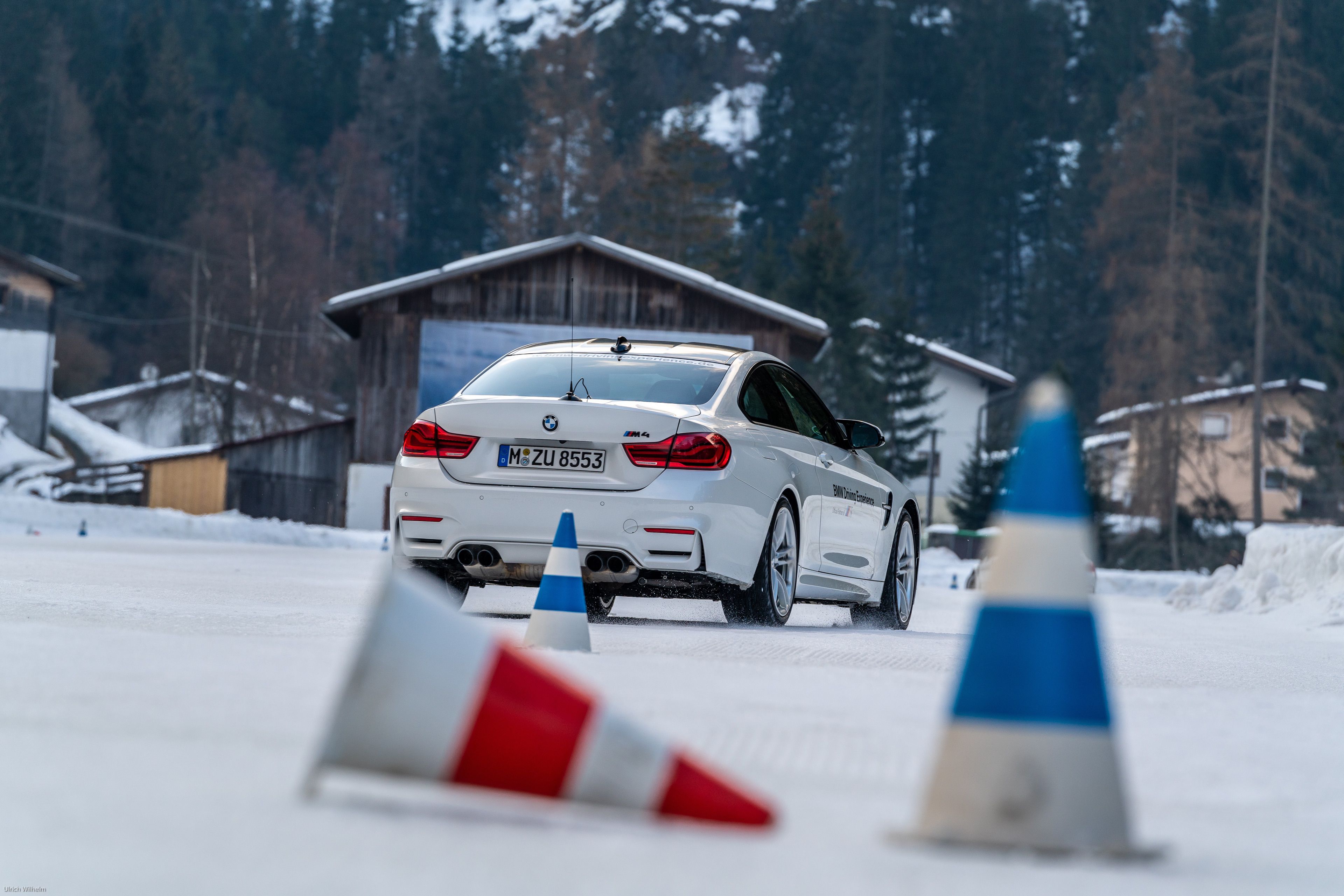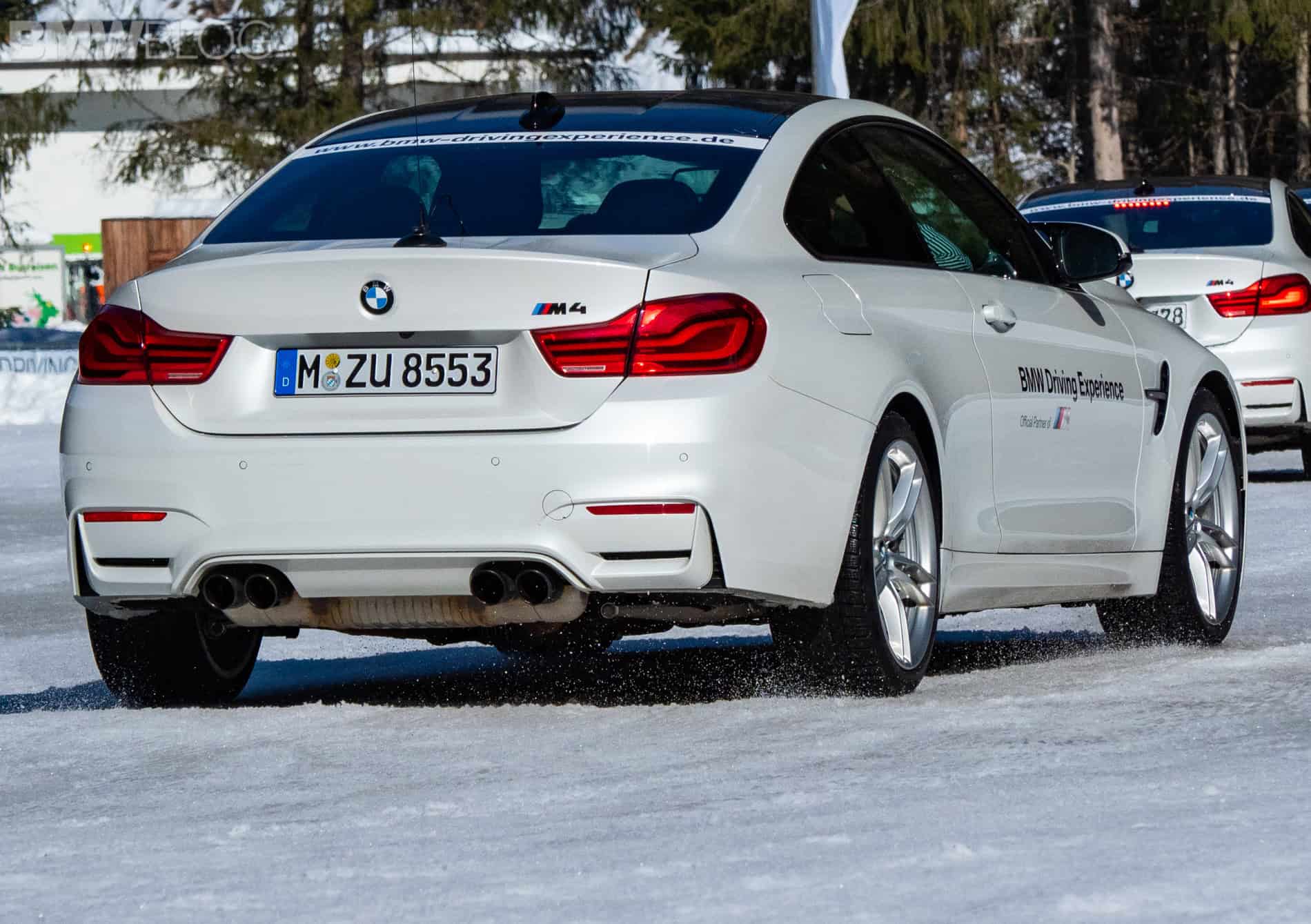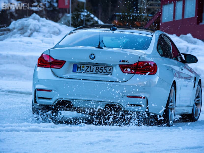 While spinning the rear wheels of your car is always fun, learning how to properly and safely do it, it’s what matters most. Markus walks us through the basics of drifting on snow and ice, with the proper oversteer, understeer and throttle control techniques, and sets us loose to try the M4 on our own. Two circular tracks are now in place, along with a more advanced track in the shape of an “eight.” This is where several of the skills perfected earlier come into place, especially when it comes to oversteering, understeering and recovering techniques. While going around the circle or the “eight”, I get to play with the M4’s power to keep a consistent slide, which sounds easier than it is. Being on very slick surfaces, it doesn’t take a lot of power to send the car in an oversteer or understeer situation, but since you’re running the M4 at low speeds, you have plenty of time to fine tune your steering inputs.