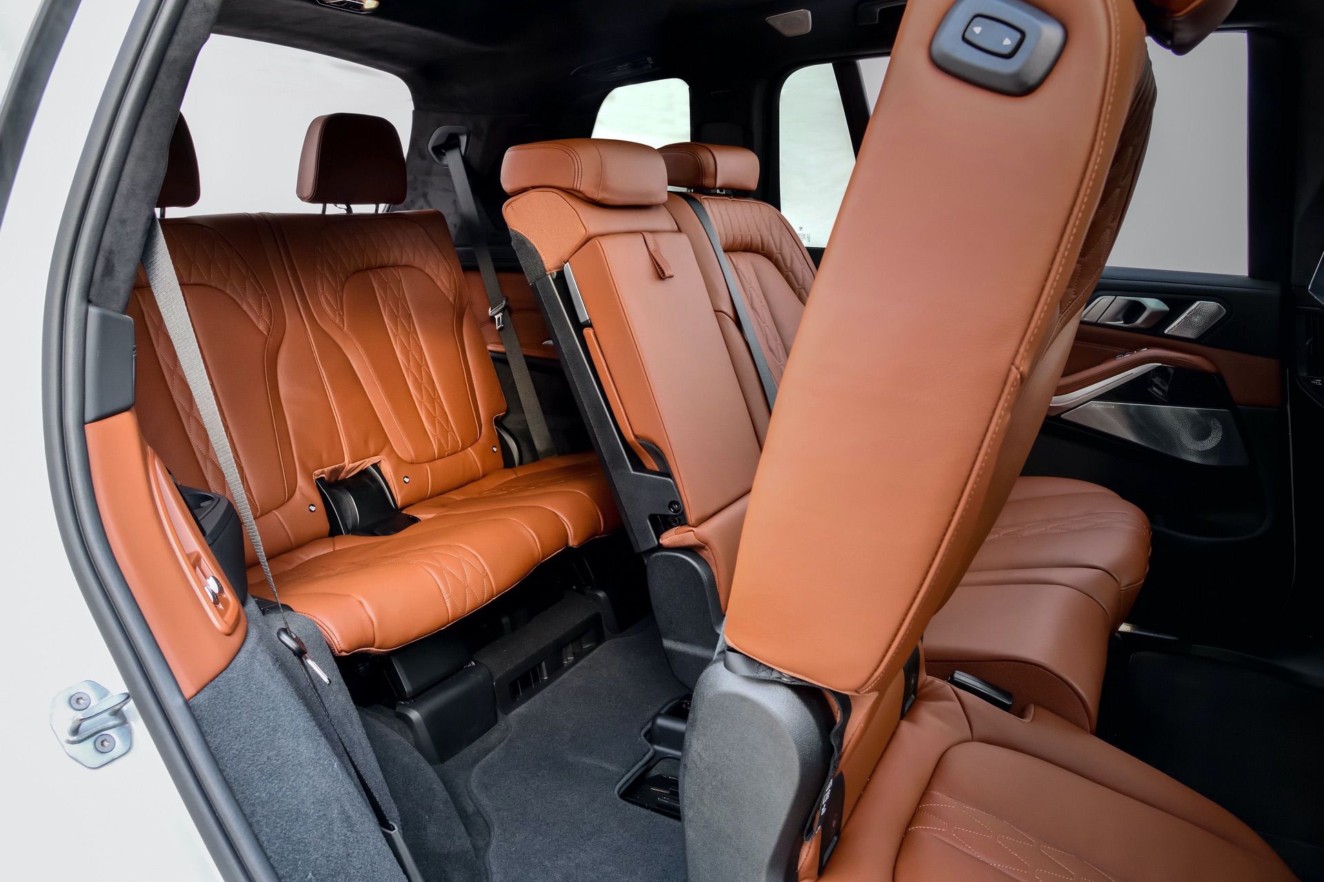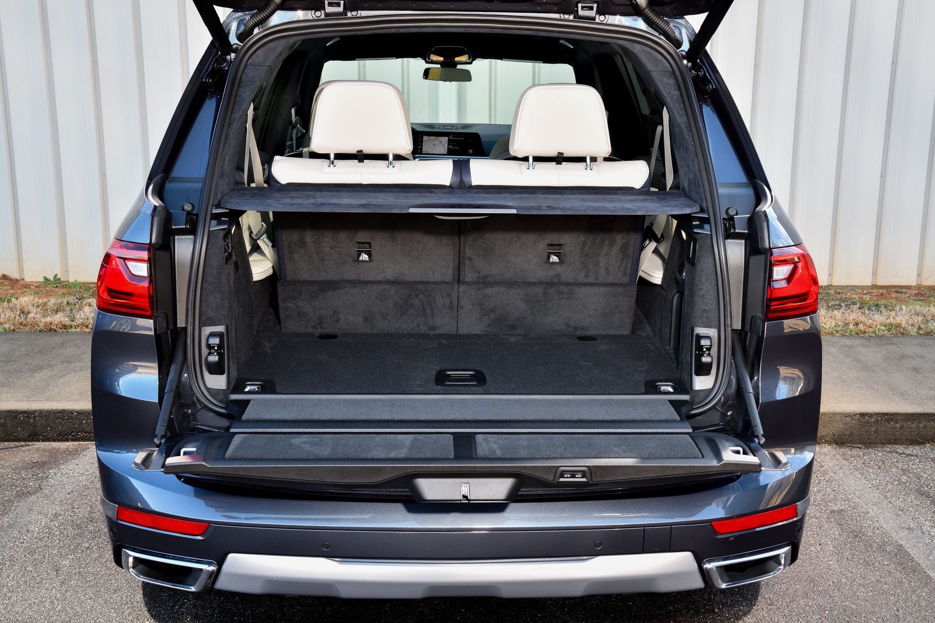 When all seats are in use, the X7 offers 48.6 cubic feet of cargo capacity, and 90.4 cubic feet when the seats in the second and third rows are folded down. In comparison, the Mercedes-Benz GLS has 49.4 cubic feet (third row down) and 93.8 cubic feet (second and third rows down).