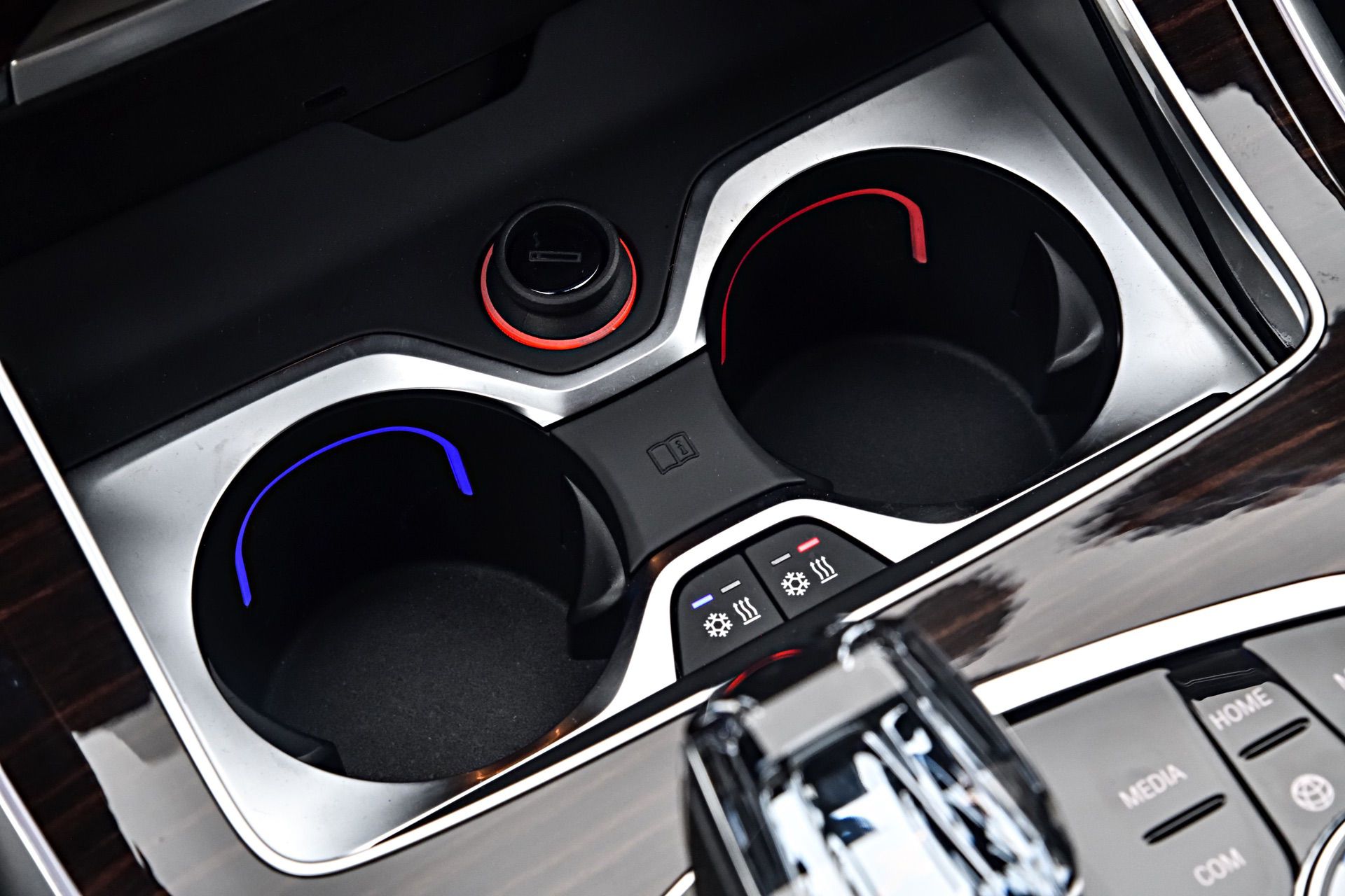 If you move down on the console, you will find a pair of switches and knobs that operated various functions of the car, from the HVAC to radio volume and a list of features too long to list here. Further down, you’re getting the “Holy Grail of tech” in a luxury SUV – front cupholders which can be heated and cooled. A gimmick? Not at all, that’s exactly the details that high-end customers look for in their Sport Utility Vehicles.