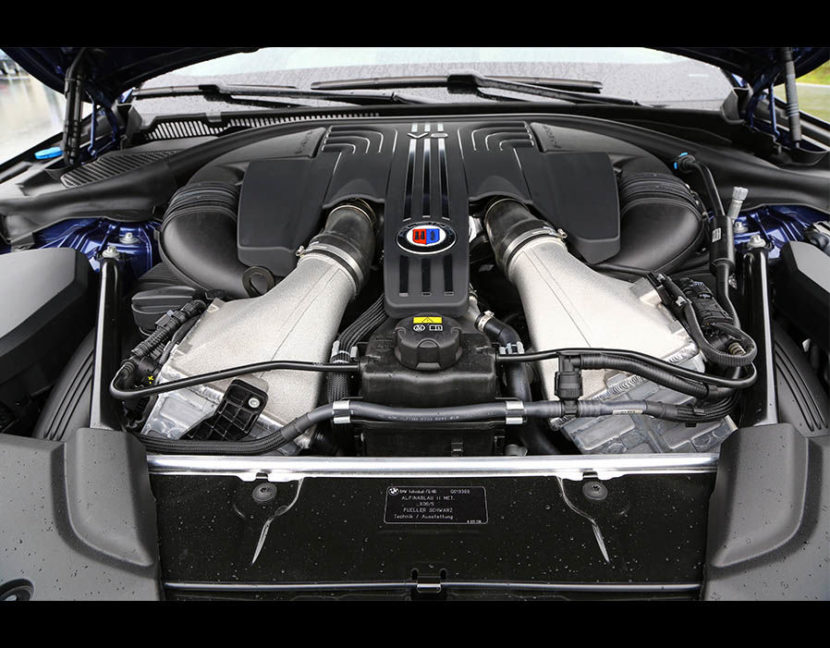 Under the hood is a revised version of BMW’s 4.4 liter twin-turbo V8. To say ‘revised’ is to drastically understate how different it is and feels. ALPINA gives it new Mahle pistons, two larger turbochargers, a new intake, exhaust, intercooler and even bigger NGK spark plugs. The entire engine is retuned to make 600 hp and 590 lb-ft of torque, making it a pokier unit than the one in the M5. More importantly, it feels different. It’s effectively the same engine that powered the B7 I drove last year and it feels more like an AMG than a BMW M engine, as Miller points out and I agree with. It’s meatier and deeper sounding low down but builds into a screaming monster at high revs.
