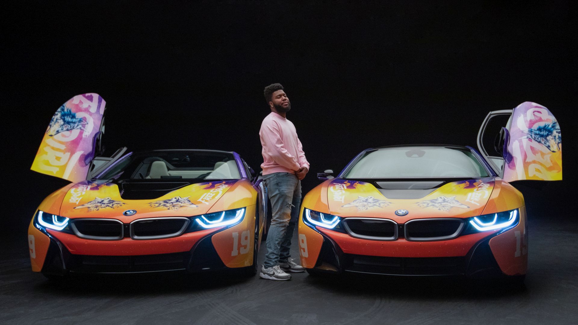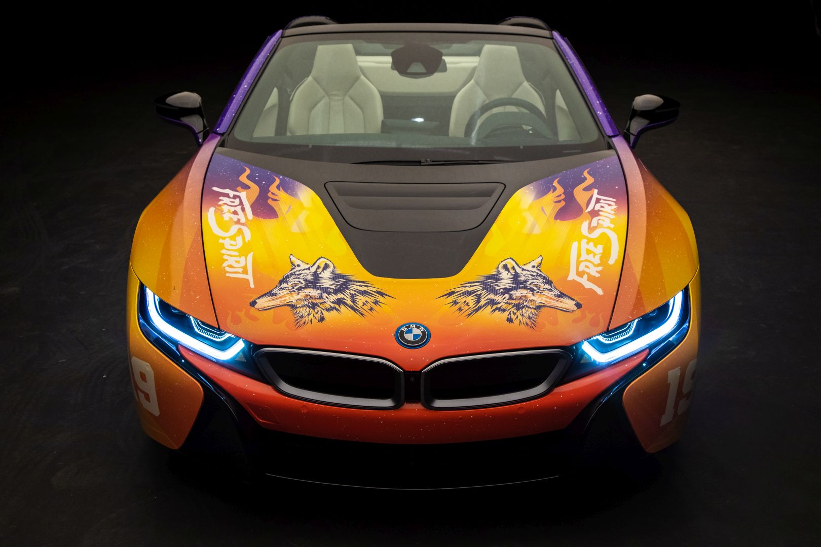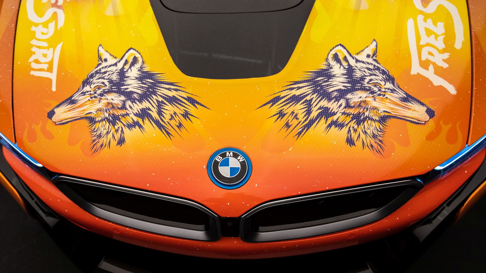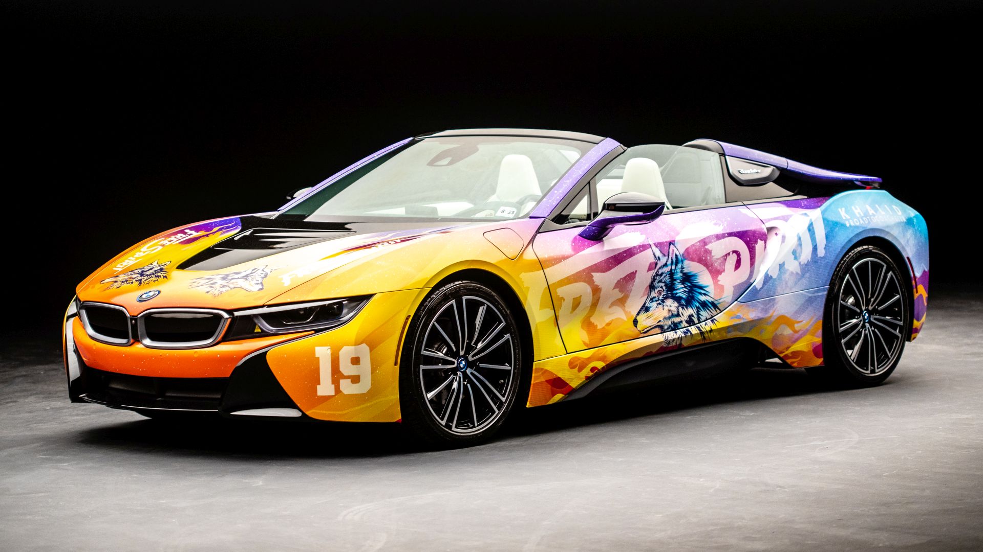 Although we saw a first video of the final creation a while back, the car wasn’t actually presented in detail until today. The photo gallery below contains all the details you want to know about. The striking look features flames and the image of a wolf and is inspired by the current album cover of Khalid. He inspired the festival fleet of vehicles for BMW i based on the cover of his new album ‘Free Spirit’. The Road to Coachella embodies the Free Spirit mentality of a fun road trip with friends to one of the greatest music festivals.