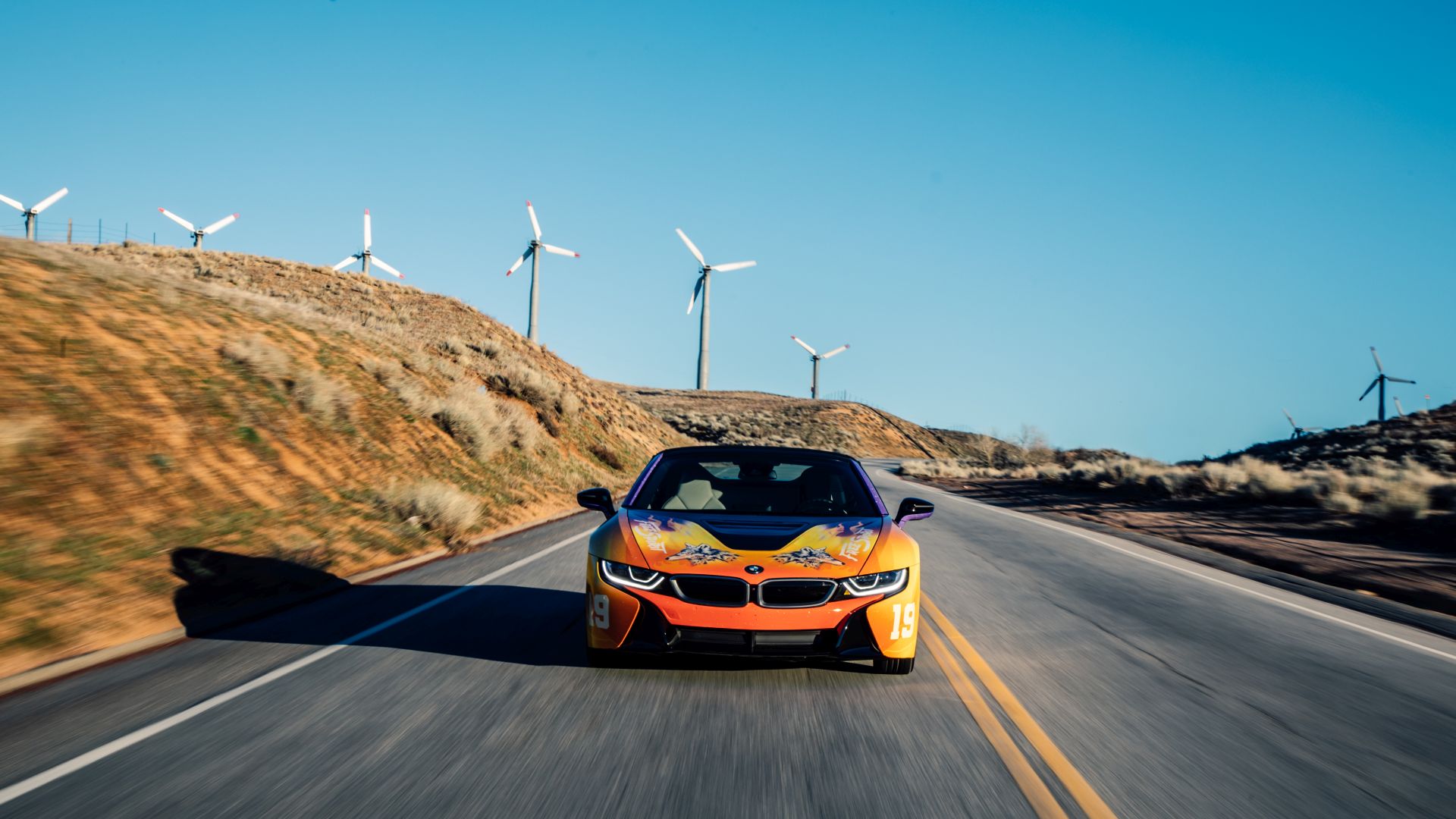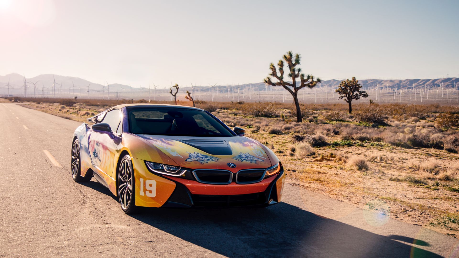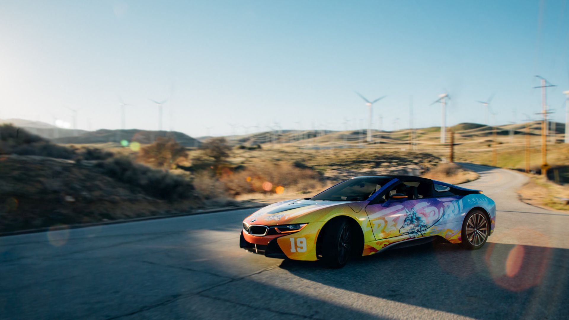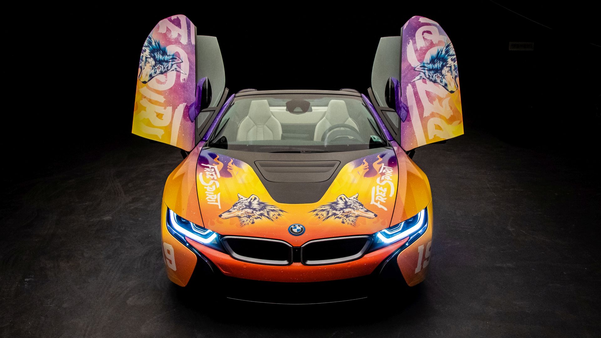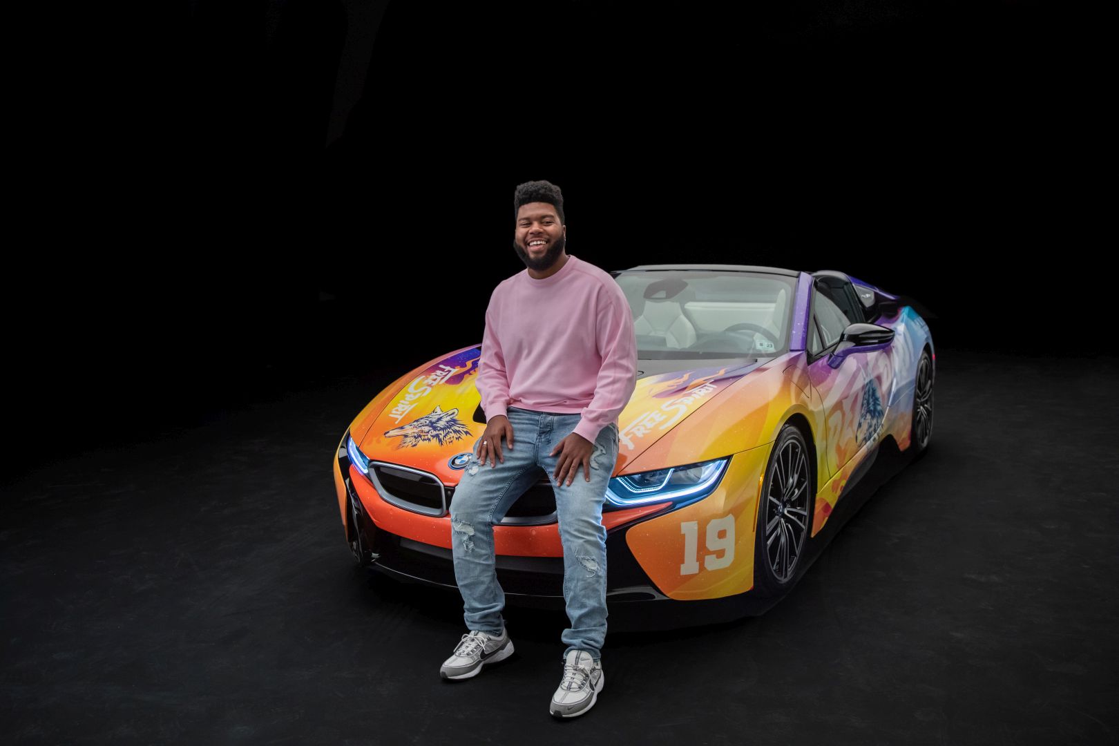 Although we saw a first video of the final creation a while back, the car wasn’t actually presented in detail until today. The photo gallery below contains all the details you want to know about. The striking look features flames and the image of a wolf and is inspired by the current album cover of Khalid. He inspired the festival fleet of vehicles for BMW i based on the cover of his new album ‘Free Spirit’. The Road to Coachella embodies the Free Spirit mentality of a fun road trip with friends to one of the greatest music festivals.