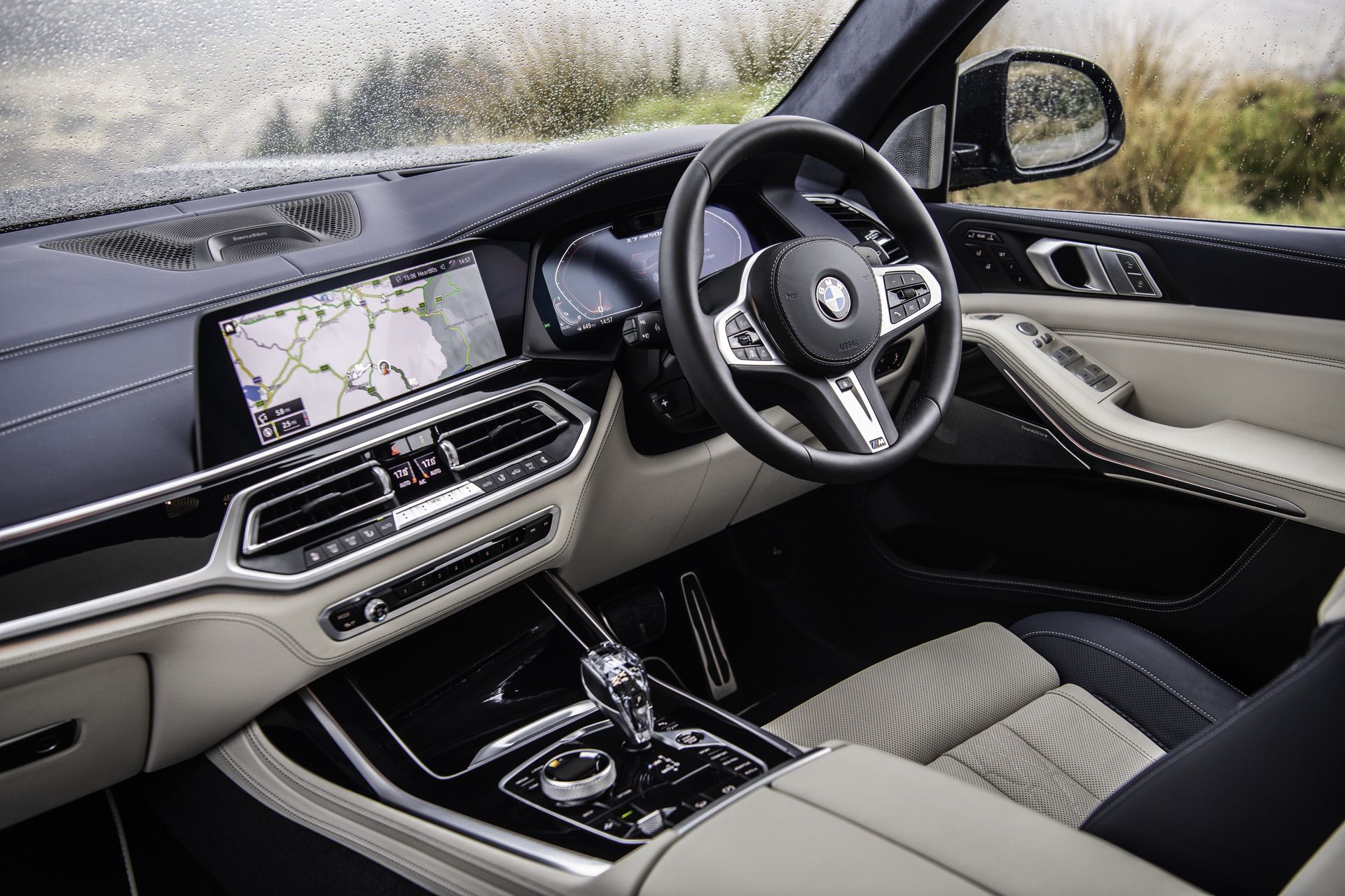 The M Sport Package on the M50d is also standard and includes redesigned front and rear bumpers, as well as side skirts in the body color. The side window graphic is also painted in high-gloss black. Other features part of the M Sport Package are the M Suspension, M Sport Brakes, M Sport Exhaust and 20 to 22 inch wheels.
