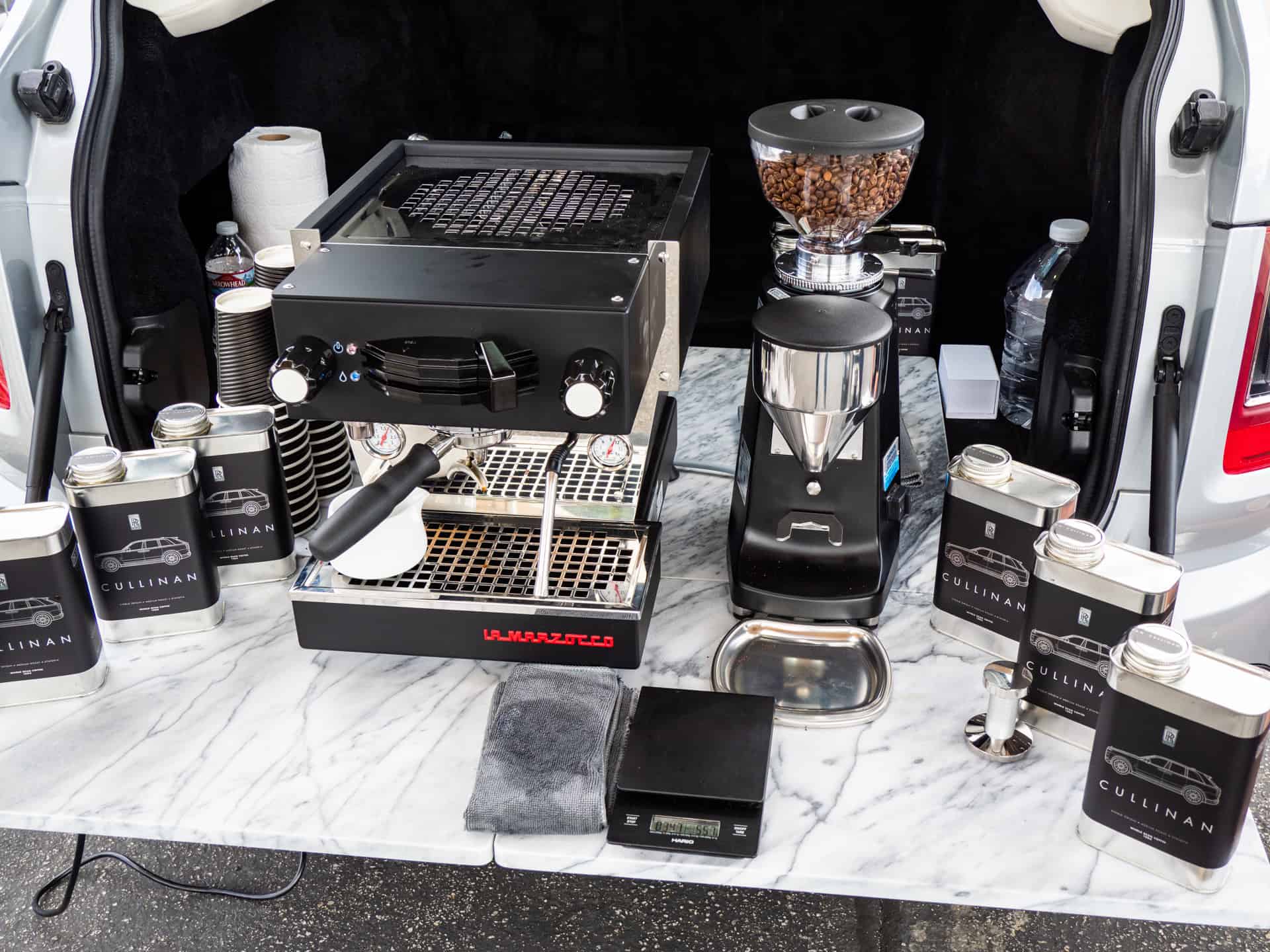 To make this experience even more unique, Rolls-Royce partnered with Daniel Marshallfor a special collection of the renowned cigars and humidors. So now, you can enjoy a cigar from the back of your Rolls. A much needed coffee was on my mind already, so the Rolls-Royce folks surprised me with their own blend put together by Drive Coffee and served from the back tailgate of the Cullinan.