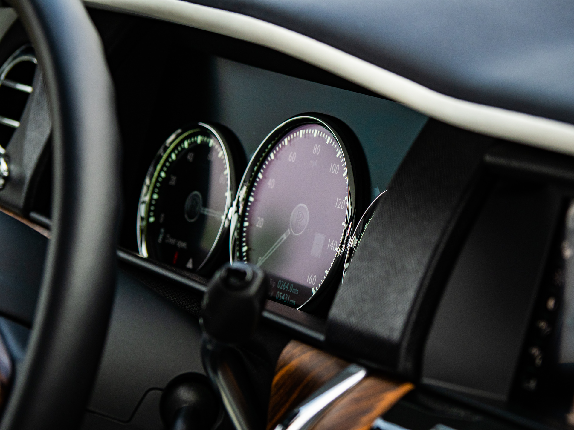 The cockpit-style dashboard features digital dials and a thick steering wheel while the in-house developed sound system is one of the best in business. My car had the two Individual Seats, compared to the Lounge Seats you might see in other configurations. This is your typical three-seat bench and is the more functional of the two, preferable for families. With Lounge Seats, the rear seats also fold down, so as to allow for more cargo space, a Rolls-Royce first. If you decide to choose the Individual Seats for the rear, you get two thrones, separated by a “Fixed Rear Centre Console”, which offers a drinks cabinet filled with whiskey glasses and decanter, as well as champagne flutes and refrigerator.