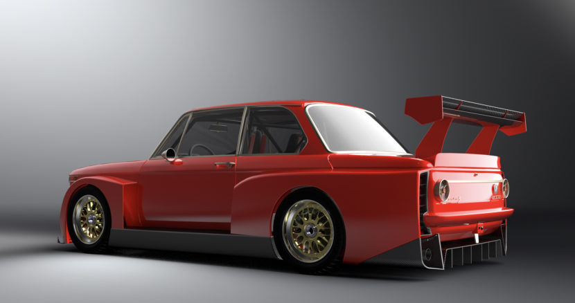 Inside, the Gruppe5 BMW 2002 will sport a full FIA-spec roll cage and new digital gauges. So it won’t feel like a classic 2002 from the inside. Handling cornering duty is pushrod suspension, both front and rear, so it should handle as well as it goes.