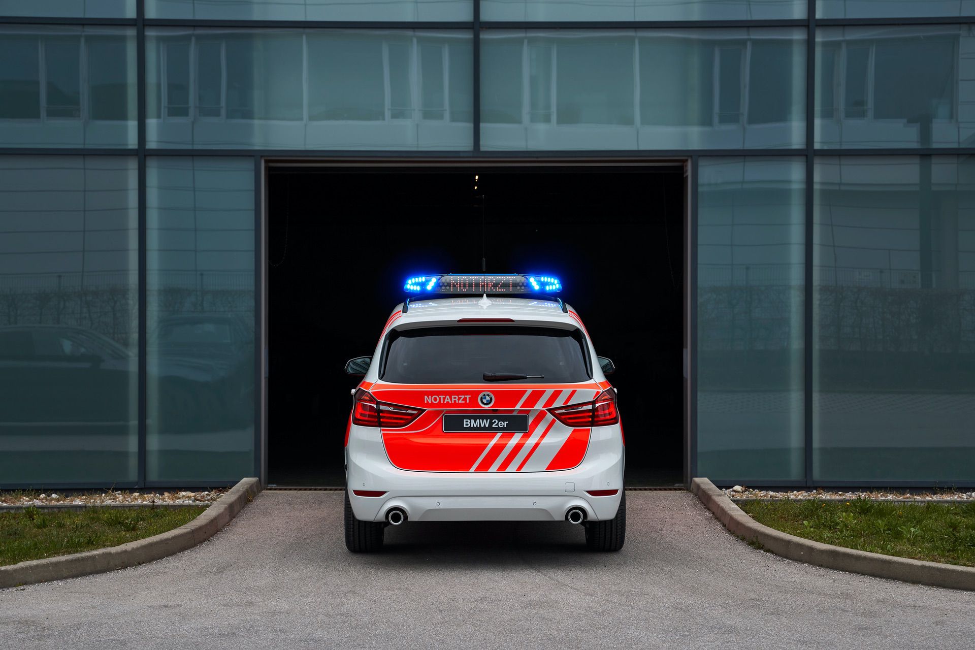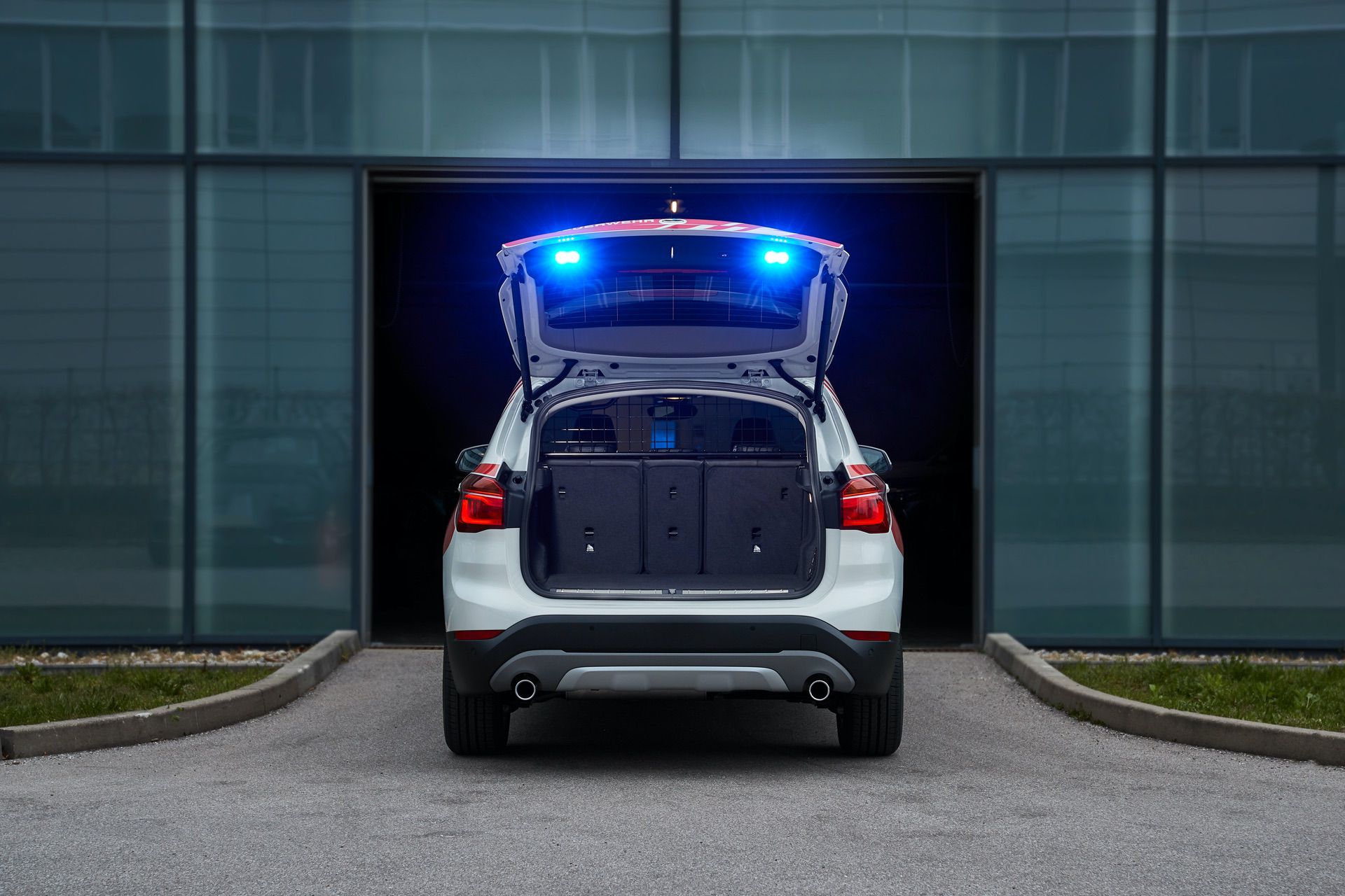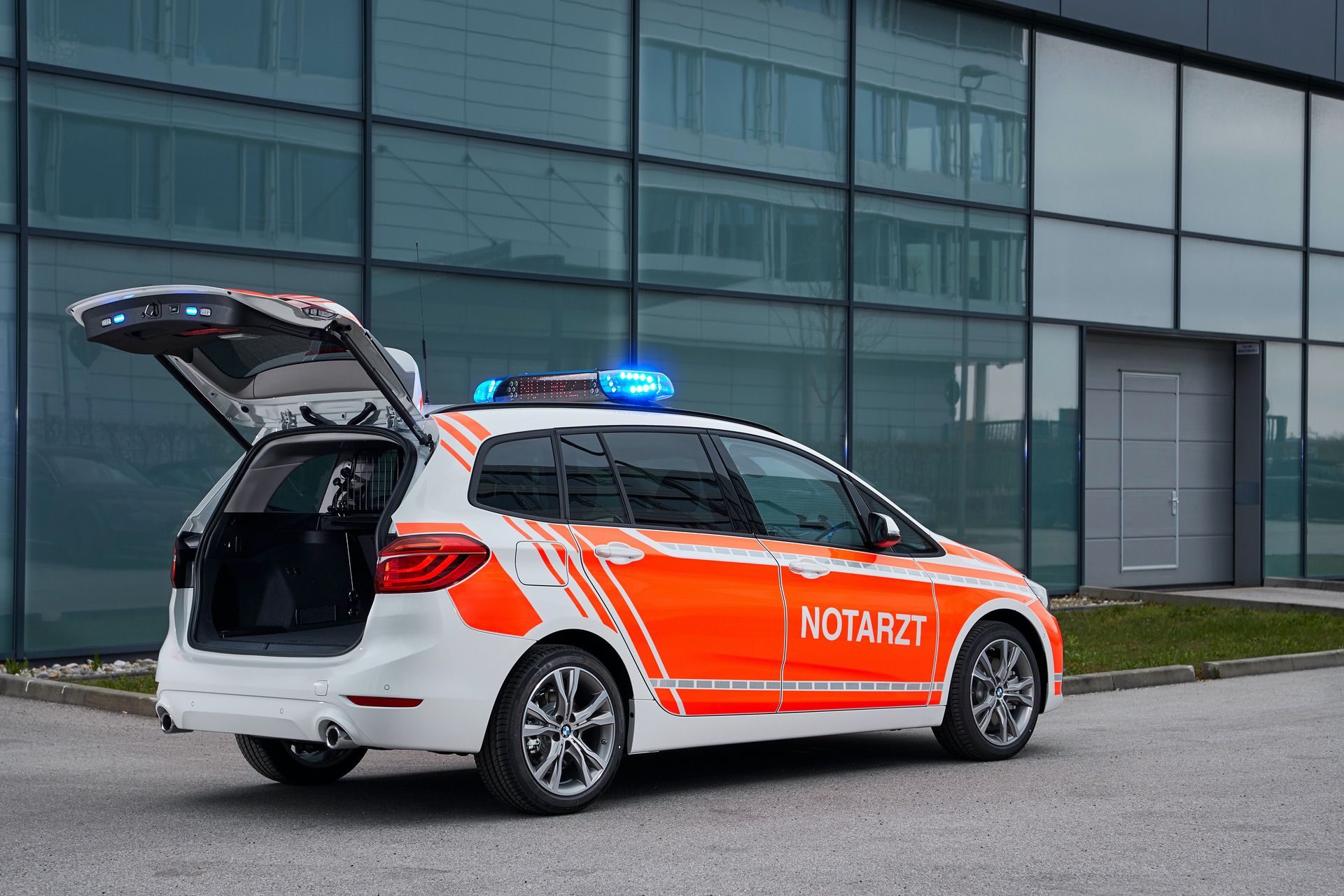 The BMW 2 Series Gran Tourer, thanks to its raised seating position, large doors and heavy-duty load floor, is the perfect for conversion to an emergency medical vehicle. The optical equipment is completed by blue flashers at the front and blue and yellow flashers at the rear, with additional yellow flashers in the boot lid.