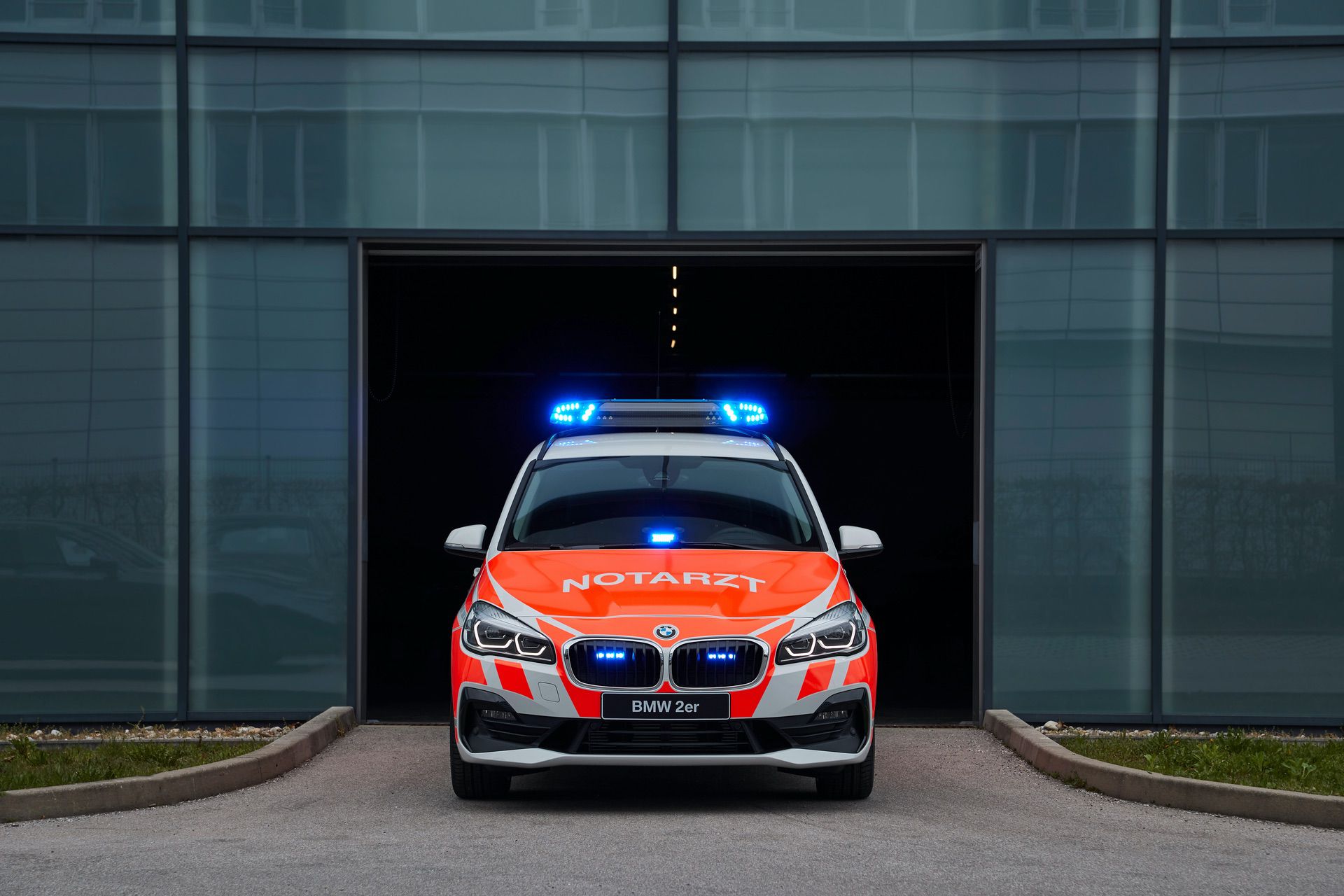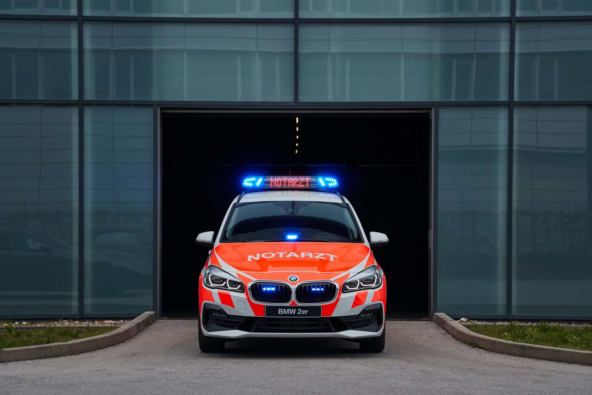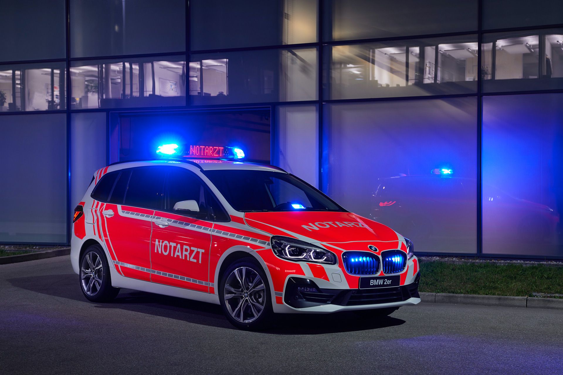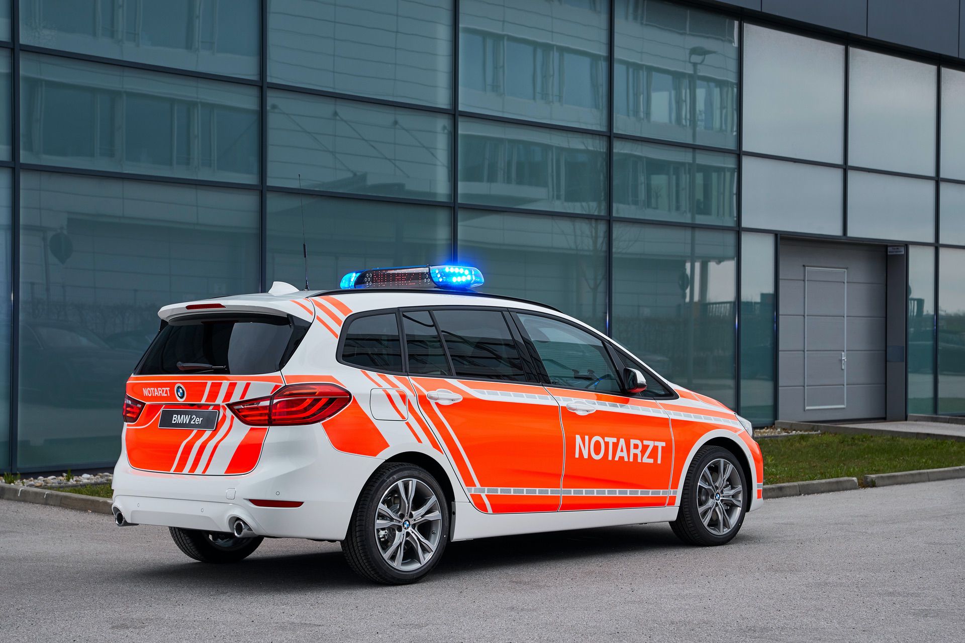 The BMW 2 Series Gran Tourer, thanks to its raised seating position, large doors and heavy-duty load floor, is the perfect for conversion to an emergency medical vehicle. The optical equipment is completed by blue flashers at the front and blue and yellow flashers at the rear, with additional yellow flashers in the boot lid.