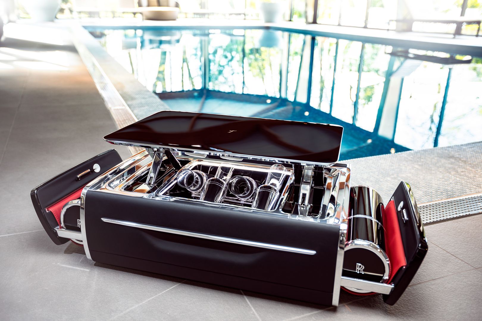 “The Champagne Chest by Rolls-Royce Motor Cars is a contemporary and sociable addition to the Accessories Collection. The approach is that of designing a Rolls-Royce motor car; the finest materials are married with pinnacle engineering to provide an experience like no other. The Champagne Chest is crafted for those that seek a heightened sense of occasion in an elegant, entertaining manner and offers the irresistible allure of gadgetry.” Gavin Hartley, Head of Bespoke Design, Rolls-Royce Motor Cars.