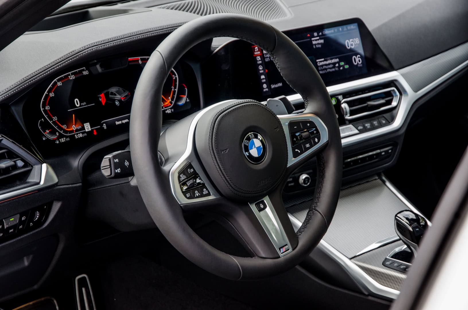 The next aspect of the 3 Series’ handling dynamics is its suspension. The car I tested rode on the brand’s new passive “lift-related dampers”. BMW made a big deal about this new suspension when it was first revealed. The idea is that it’s a fixed suspension setup, without any adaptive modes, that’s been designed to be both more comfortable and more composed. Without getting into a thousand-word tech briefing, I’ll just tell you that it works and works well.