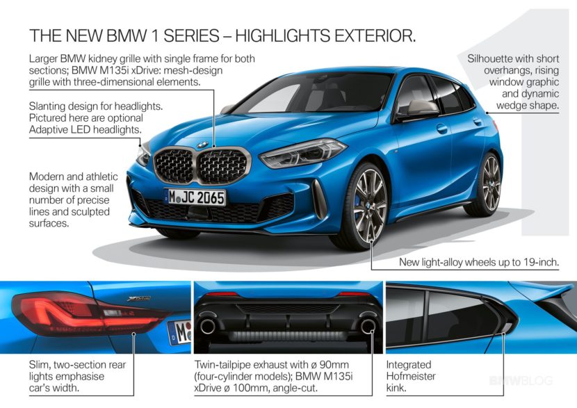 The fans’ favorite BMW M140i with a rear-wheel drive setup is now history. The new boss of the new F40 BMW 1 Series family is the M135i xDrive. Using the front-wheel drive architecture from BMW, the new hot hatch is still sending power to all four wheels, but this time, from a 2.0 liter four-cylinder turbo engine. This engine is the BMW Group’s most powerful four-cylinder engine, extracting 225 kW (306 hp) between 5,000 and 6,250 rpm and has a peak torque of 450 Nm (332 lb-ft) 1,750 rpm and stays there up to 4,500 rpm. The flagship model races to 100 km/h (62 mph) from rest in just 4.8 seconds (4.7 seconds with M Performance package), while top speed is limited to 250 km/h (155 mph).