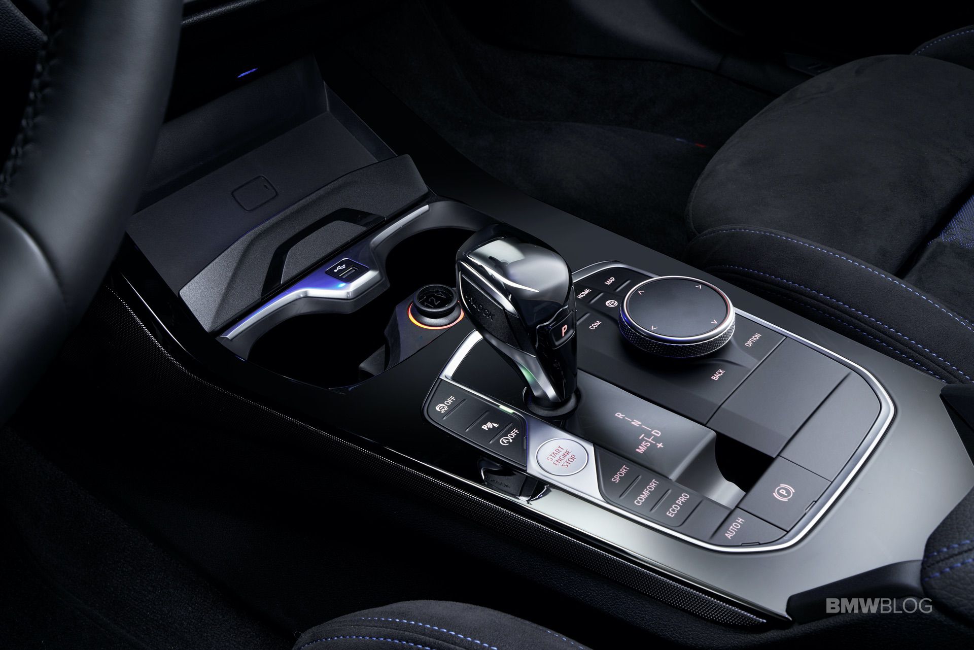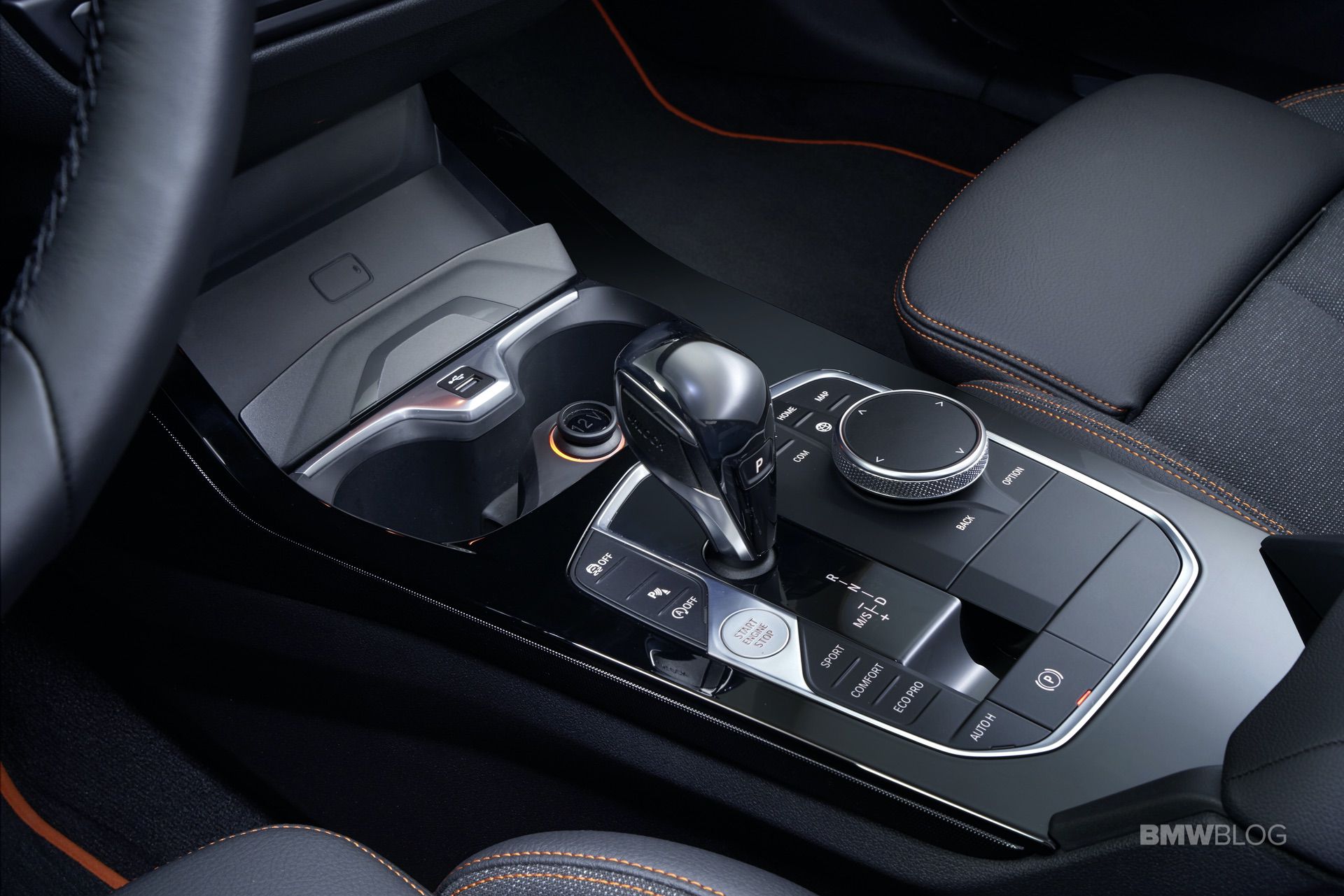 The controls for the heating, air conditioning and new hexagonal air vents are grouped together in the centre console below the Control Display. With the Start/Stop button and gear selector lever now also located in the control panel in the lower section of the center console, all the controls relating to driving functions are clustered together in one area. Situated to the right is the iDrive Controller – or the iDrive Touch Controller if the BMW Live Cockpit Plus or higher is specified – used to control the infotainment system. In front of the selector lever is a practical stowage area which can be specified with the Wireless Charging option for smartphones.
