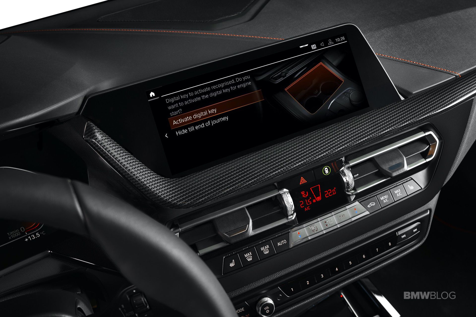 For the first time, the BMW 1 Series family will include the the BMW Digital Key and BMW Intelligent Personal Assistant. Now, the smartphone is also able to replace a conventional car key for BMW 1 Series drivers. If the Comfort Access option is specified, the BMW Digital Key allows the car to be locked and unlocked from a smartphone using Near Field Communication (NFC) technology. Holding the smartphone up to the door handle opens the car – even if the phone battery is dead. The engine can be started as soon as the phone has been placed in the smartphone tray or wireless charging tray.