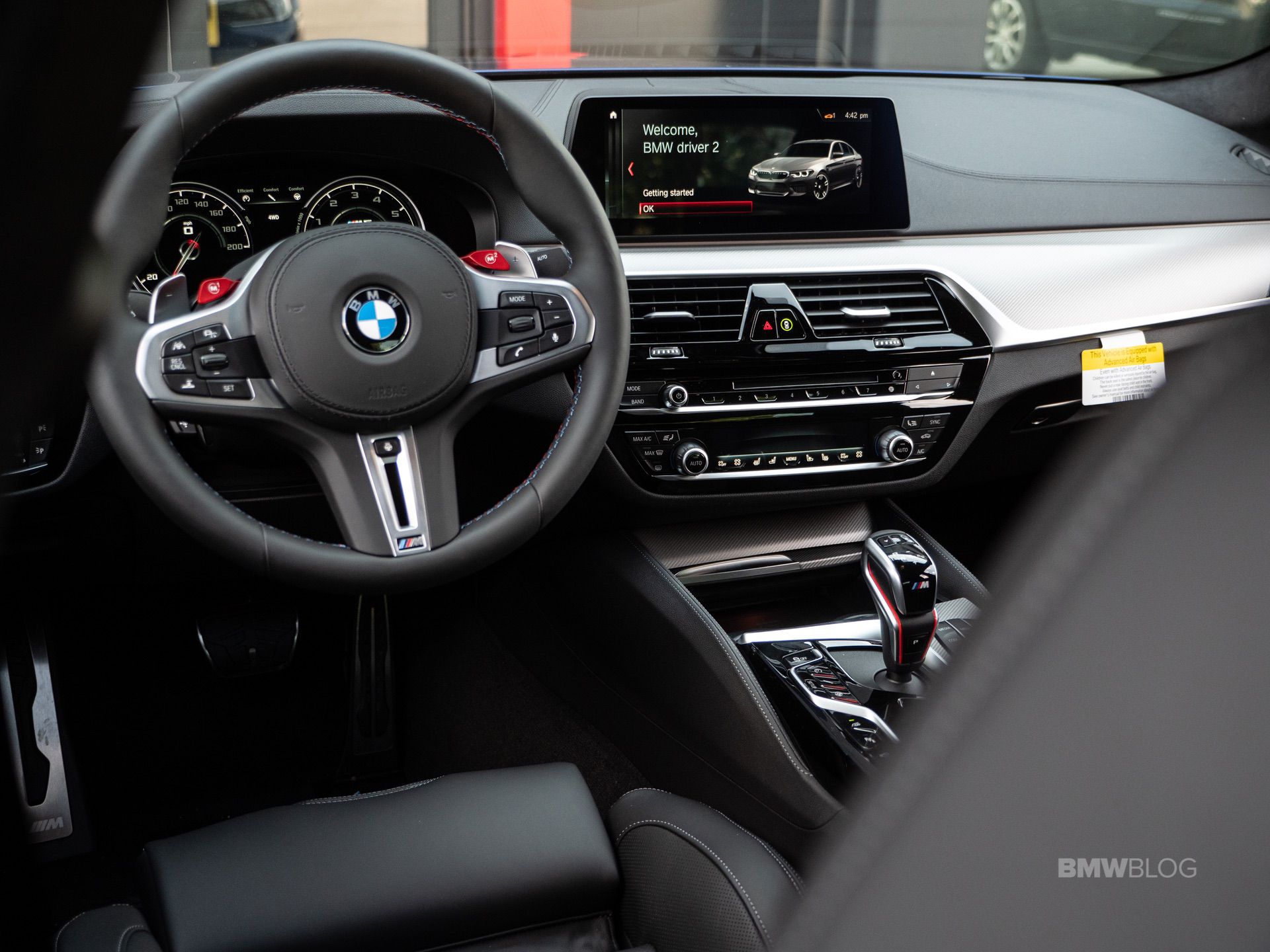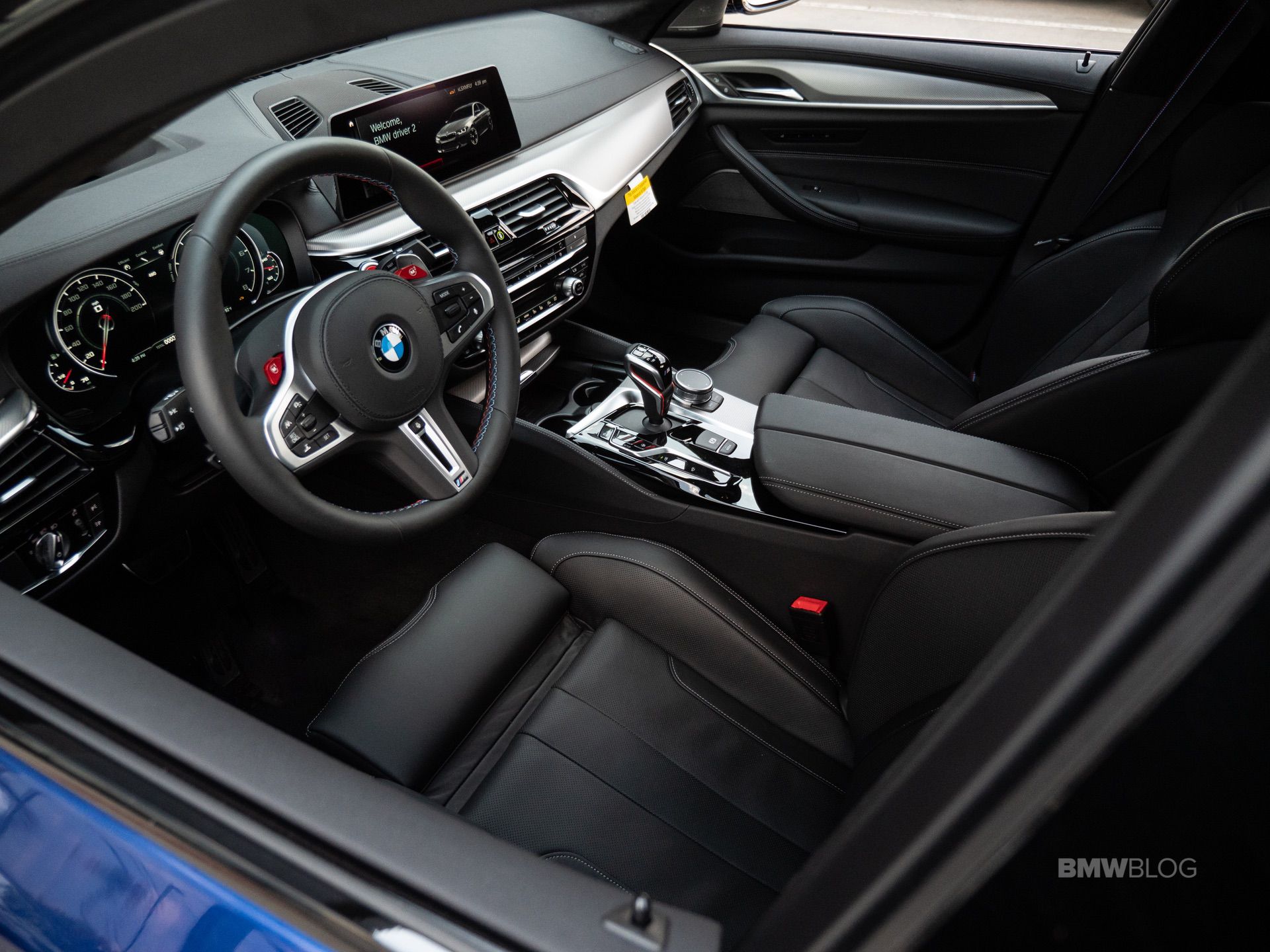 On the outside, the BMW M5 Competition gets BMW’s usual Competition Package treatment. That means black grilles, black mirror cars, a black Air Breather and black badges. It also gets a little black decklid spoiler, giving it a more aggressive look. BMW also get the M5 Competition new wheels, which are a bit sportier than the standard ones, even if they aren’t some of BMW’s best. Inside, the M5 Comp gets M-striped seatbelts and floor mats, to make it feel a bit more special.