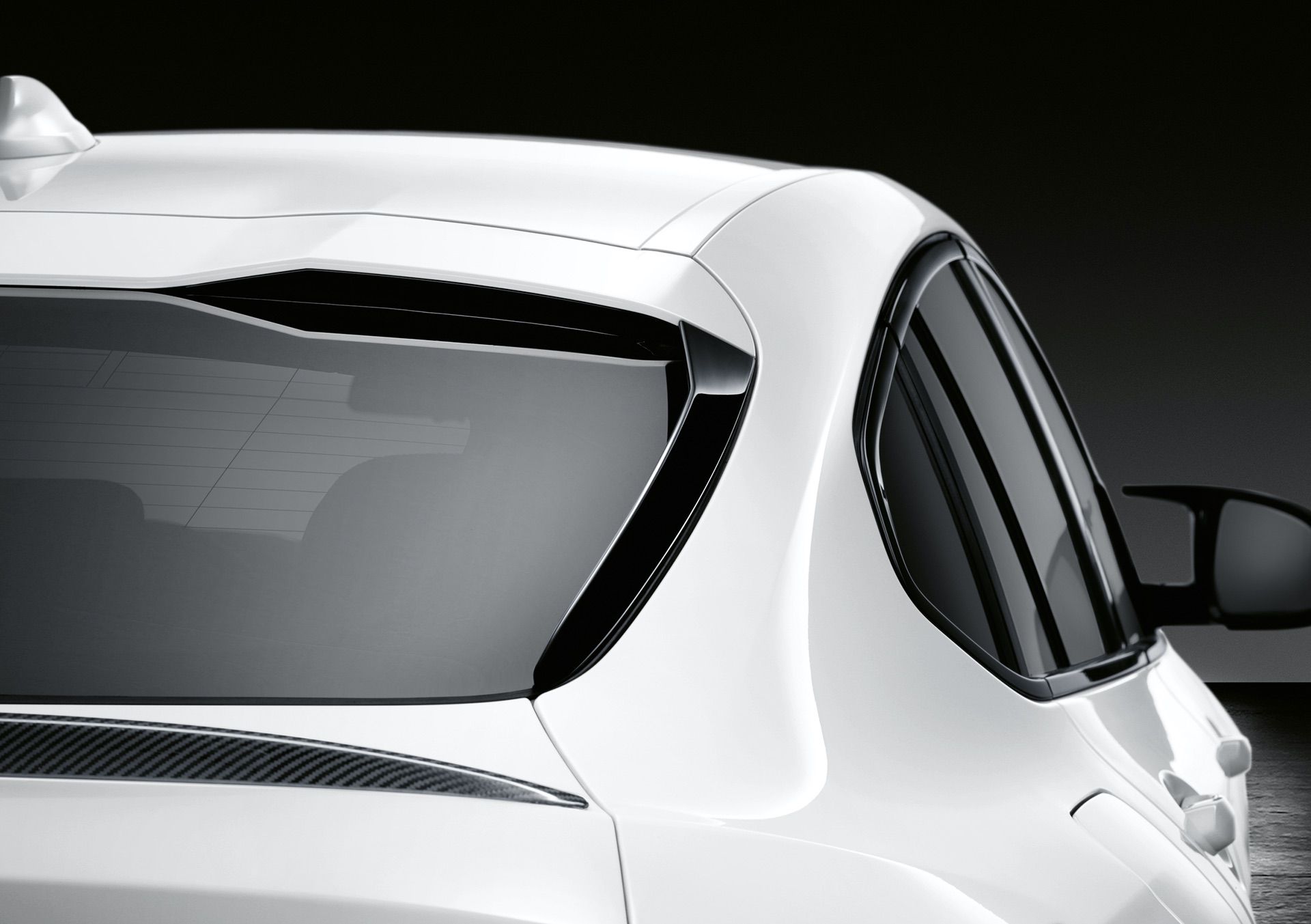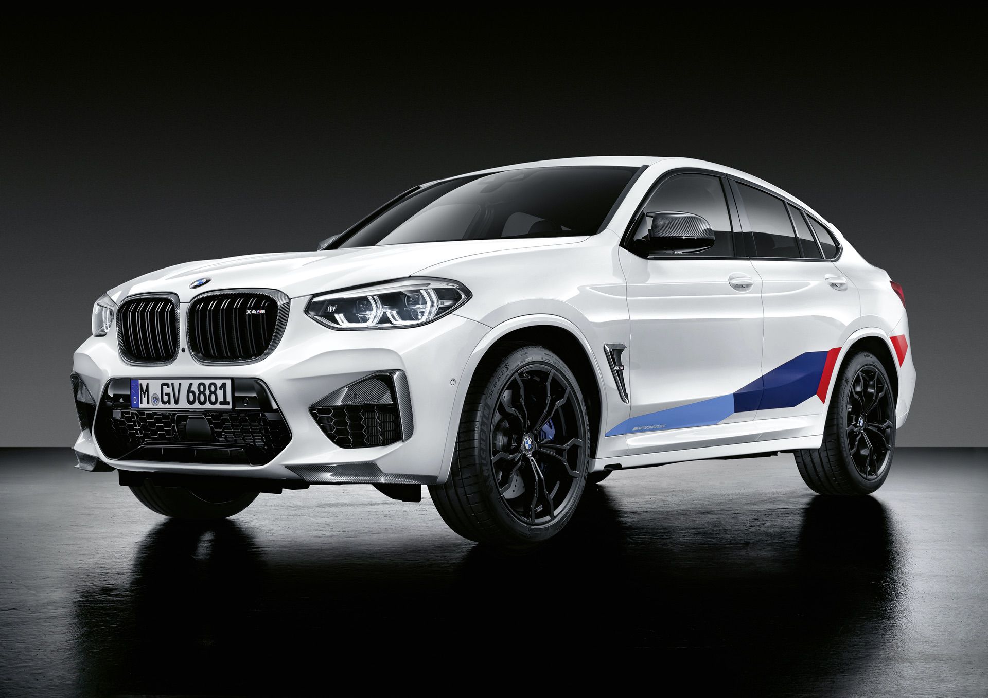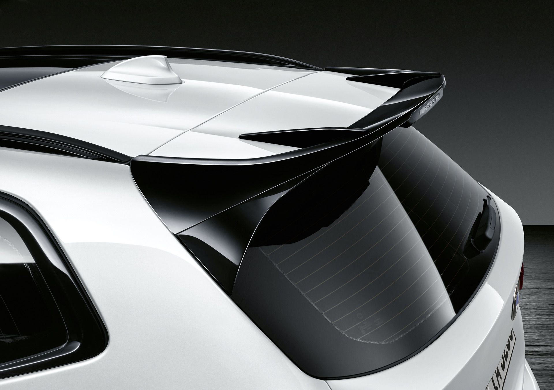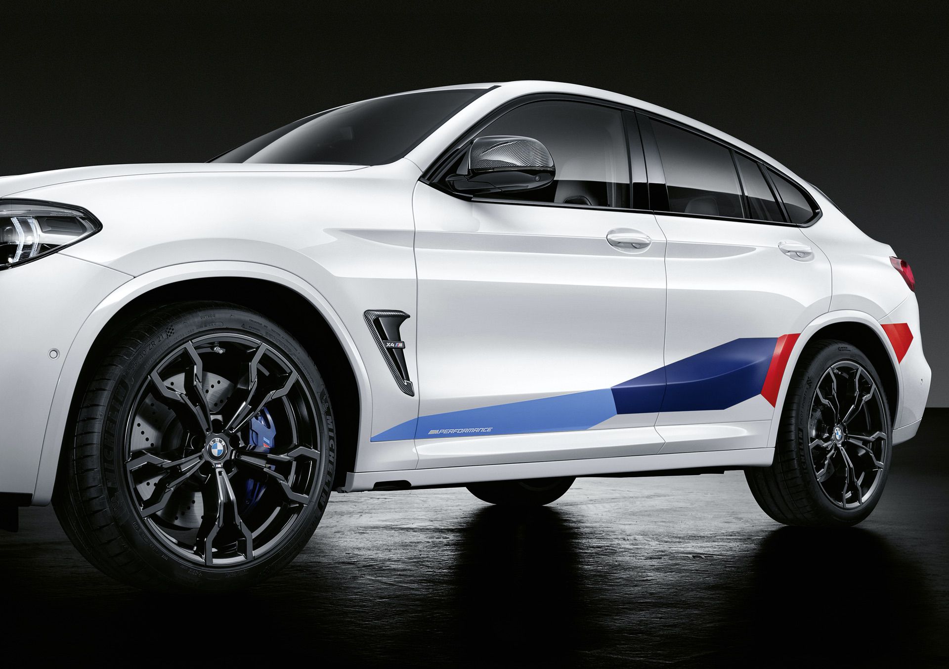 The BMW X3 M can also be enhanced with a roof edge spoiler in high-gloss black. The exclusive rear fins for the BM X4 M are also finished in high-gloss black. Finally, there is an M Performance motor racing lettering for front, rear and side.