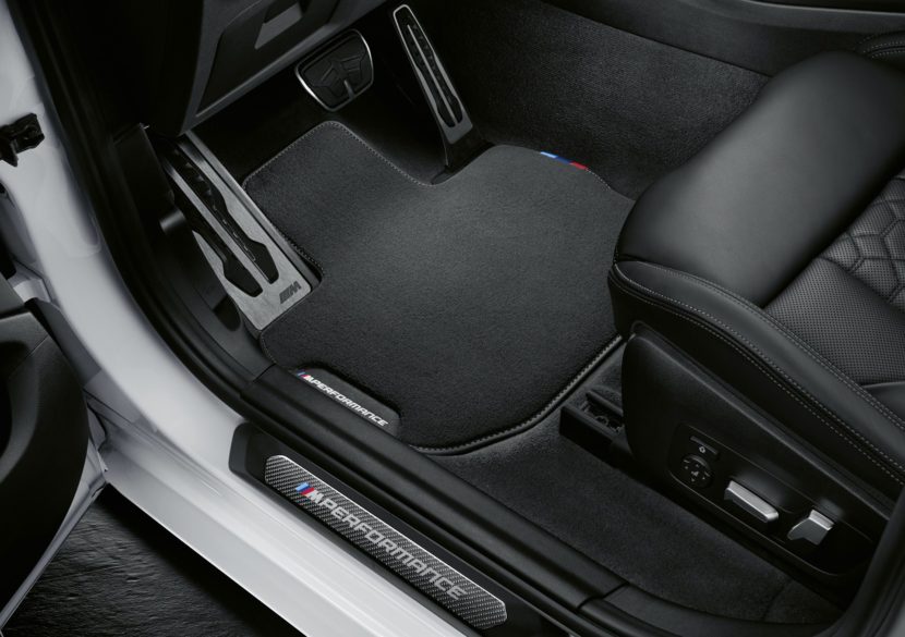 In the footwell, we’re getting velvet velour floor mats with embroidered M Performance inscription, a leather-look surround complete with contrasting seam and a pennant in the typical M colors.