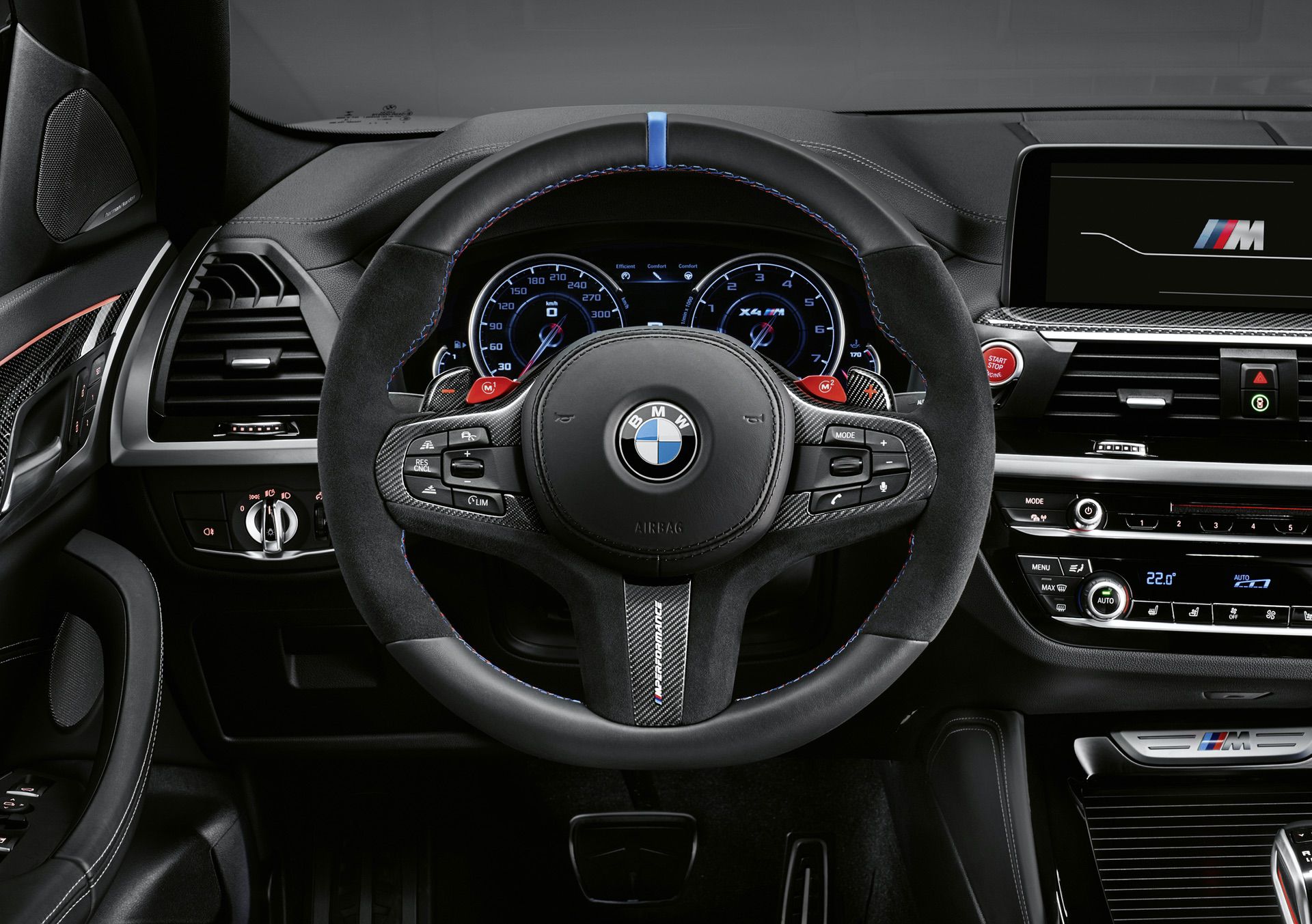 For the interior of the BMW X3 M and BMW X4 M, there is a wide selection of M Performance components available to enhance the cockpit both visually and functionally. The M Performance Pro steering wheel consists of the steering wheel, carbon fiber Alcantara steering wheel trim and carbon fiber shift paddles.