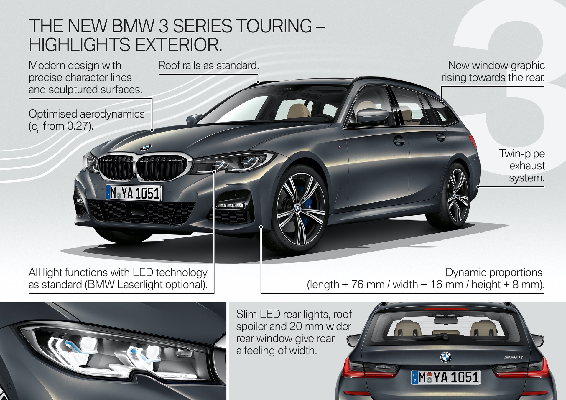 The sixth generation of the BMW 3 Series Touring will be unveiled to the public for the first time on 25 – 27 June 2019 via the new BMW Group #NEXTGen presentation platform at BMW Welt in Munich. Hosting the show premiere of the new BMW 3 Series Touring, meanwhile (just as it did the first generation of the five-door car), will be the IAA event in Frankfurt am Main in September 2019. The worldwide launch will get underway on 28 September 2019. Like all of its predecessors, the new BMW 3 Series Touring will be built at the BMW’s home plant in Munich – alongside the new BMW 3 Series Sedan. The new BMW 3 Series Touring will go on sale in Europe, Japan, South Korea, Taiwan, Hong Kong, Australia and New Zealand.