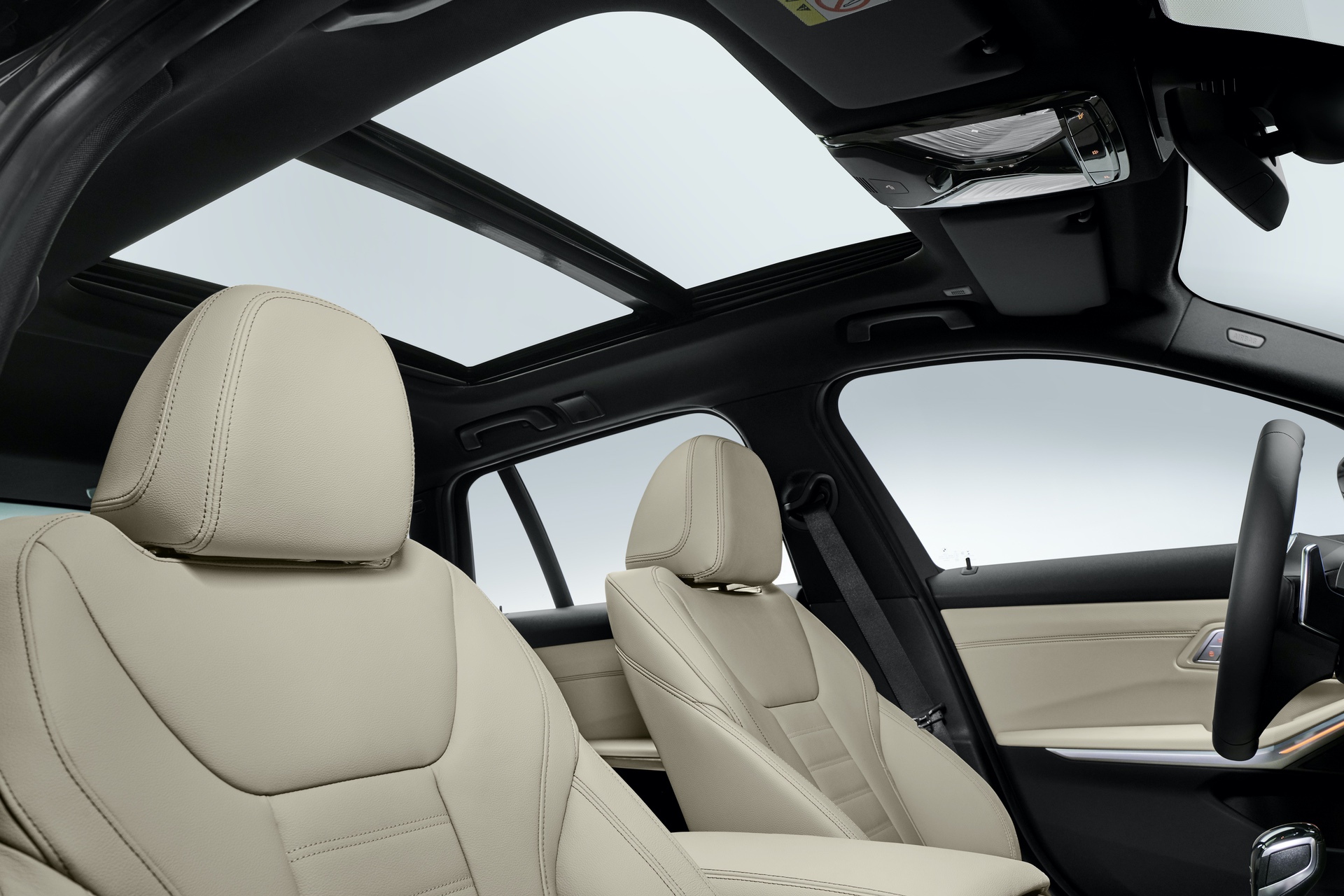 The G21 3 Series Touring also takes advantage of that long roof by offering a panoramic sunroof. This allows more light into the cabin and makes the longer roof seem a bit more open. It’s a two-piece glass sunroof but only the front half opens, as the back half is just to let light in. A power-operated interior blind can help block out light if need be.